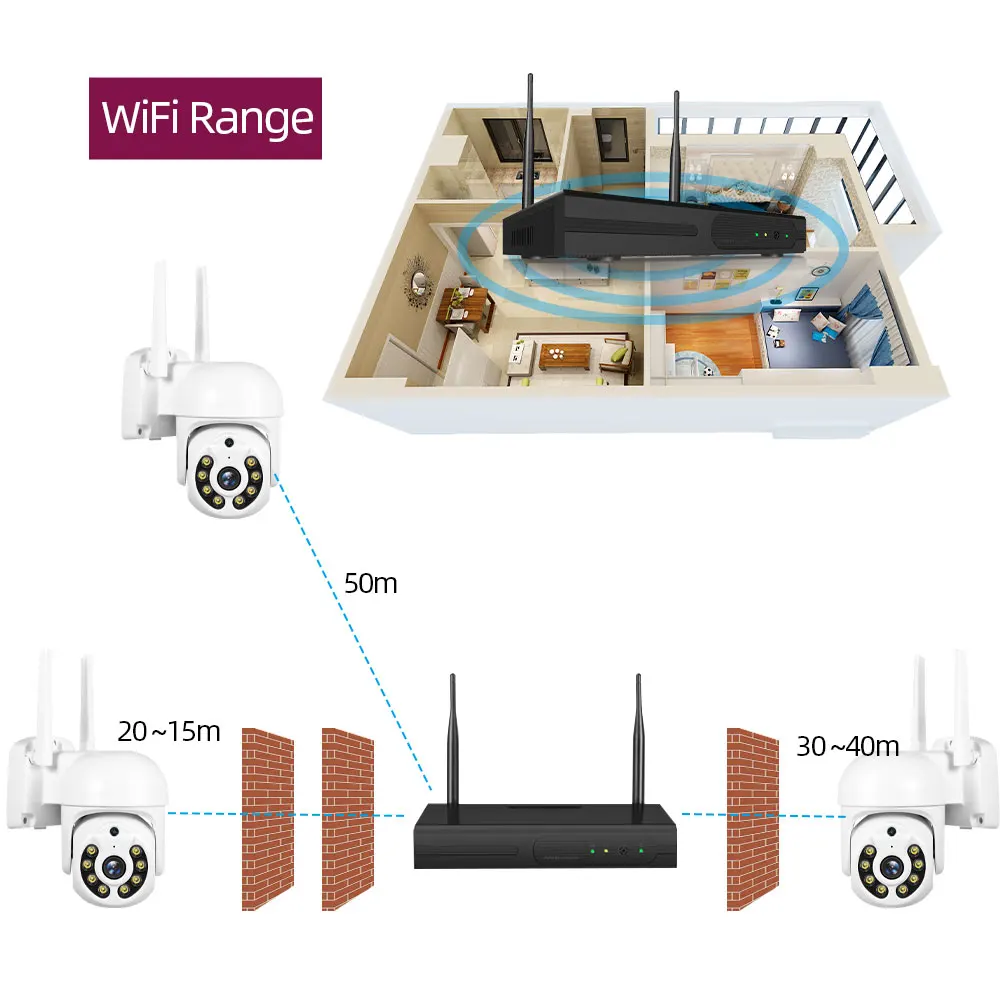 Wireless connections between cameras and NVR,Up to 50 Meters Wireless Transmission(no obstacle)