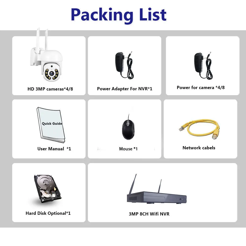 3MP 8CH Wireless Camera Security System Set 2MP Wifi NVR Kit 4CH 2 Way Audio Outdoor Wifi Video Surveillance Camera System Kit