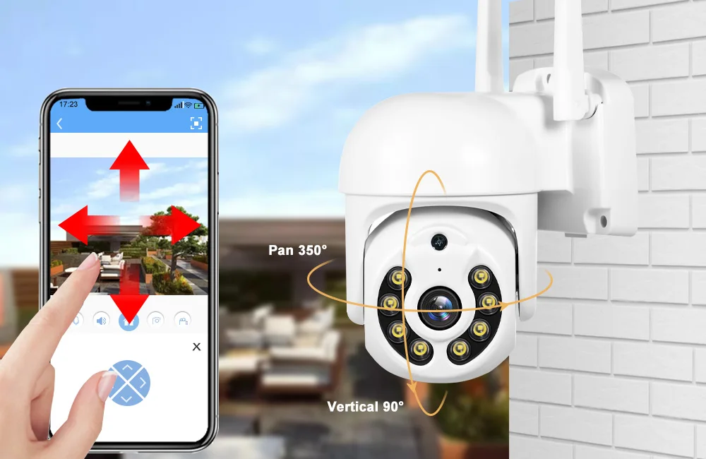 This camera can rotate 355 degrees horizontally and rotate 90degrees vertically.The mobile phone can control the rotation angle of the gimbal and see the direction you want to see.