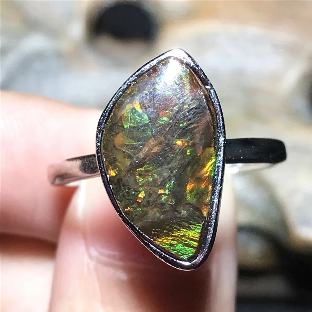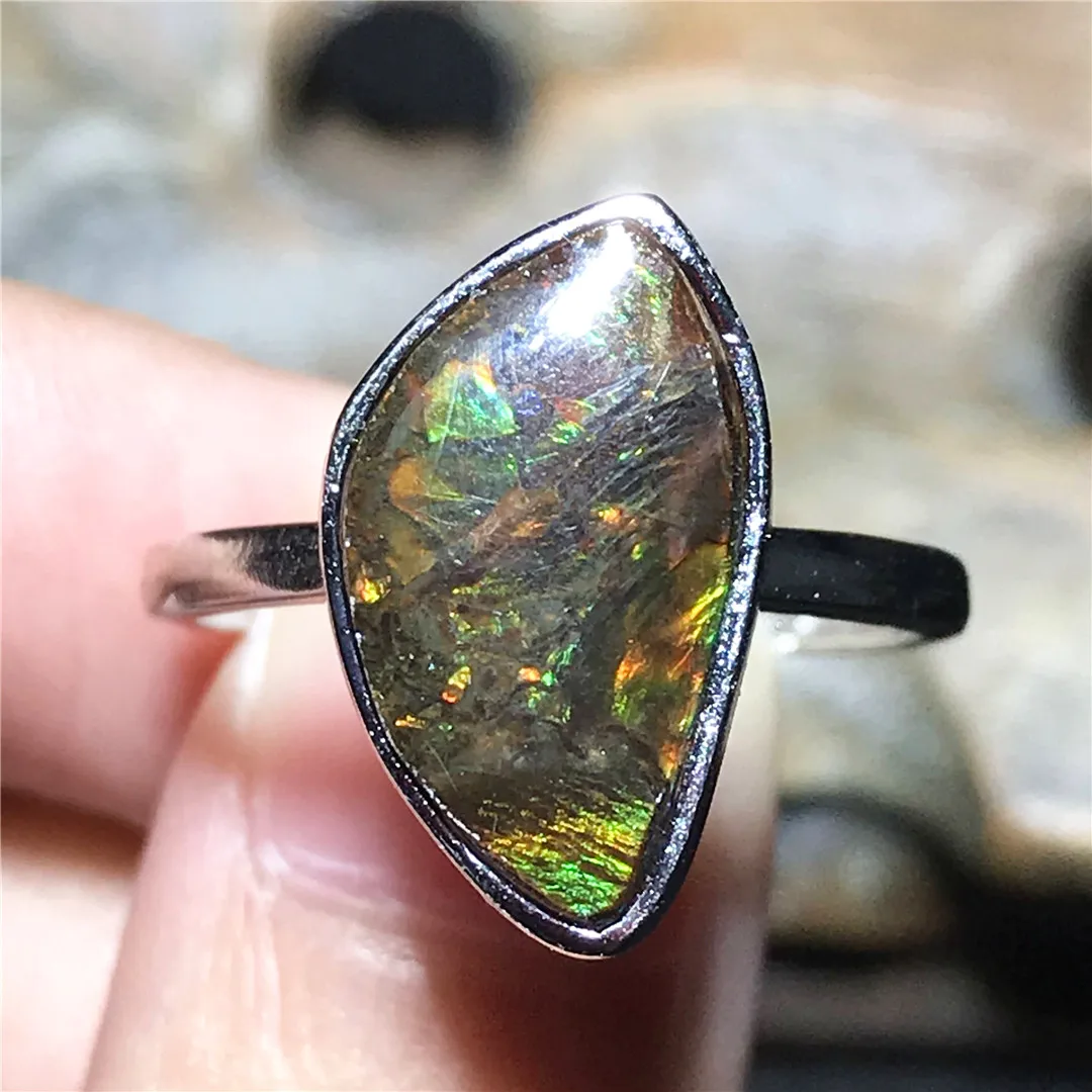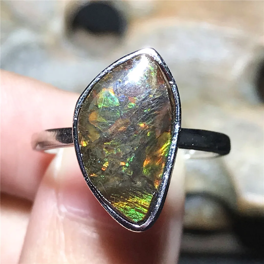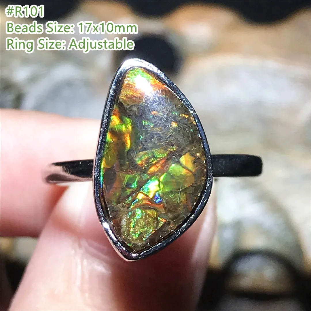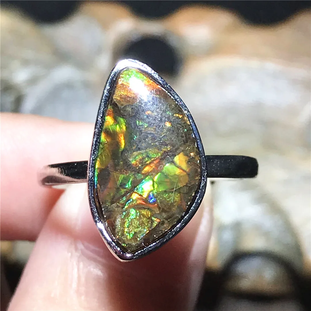 Топ натуральный зеленый аммонит аммолит кольцо для женщин мужчин подарок 17x10 мм бусины Кристалл камень серебро регулируемый размер ювелирные изделия AAAAA Прямая поставка