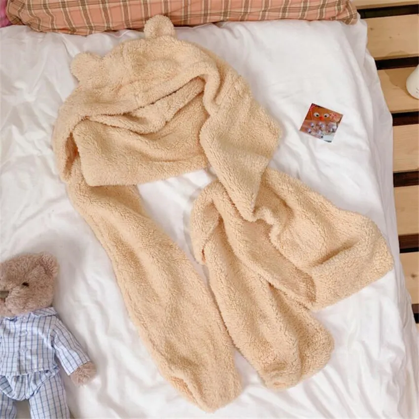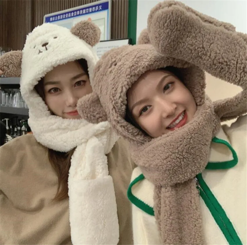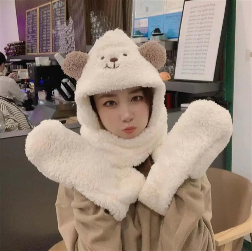Лолита девушка плюшевый медведь уха шапка и шарф японские меховые наушники для защиты от холода шапка осень зима Kawaii теплая шапка D1011