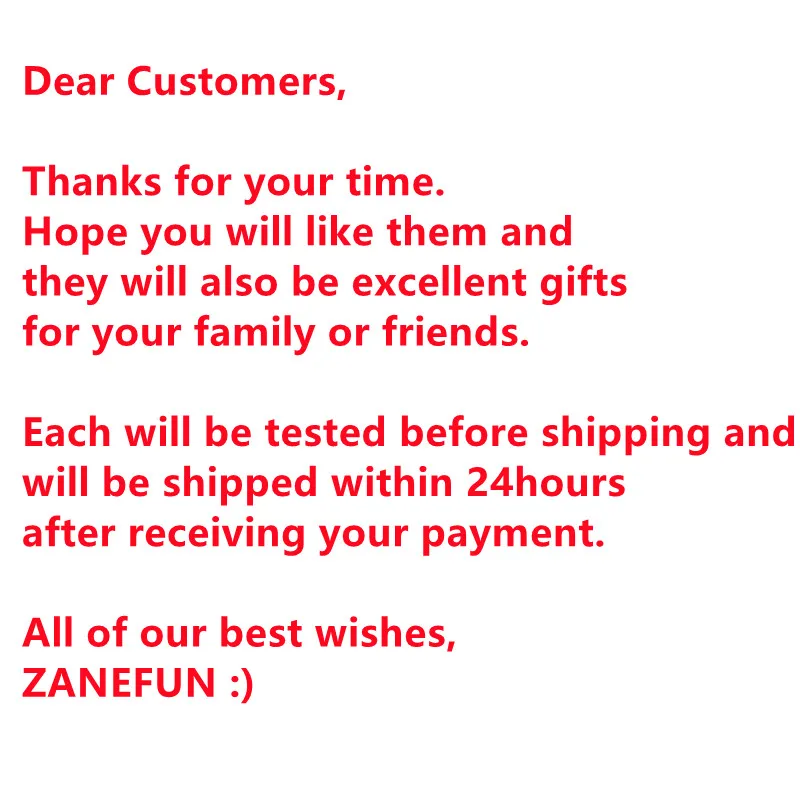 Мы обещаем: 1. Высокое качество и отличное звучание. 2. Каждый заказ будет отправлен в течение 24 часов после получения оплаты. Как правило, товар будет отправлен в тот день, когда вы заказали. 3. Каждый продукт будет протестирован перед отправкой, чтобы убедиться, что все будет хорошо. Примечание: это уже Рекламная цена, и, пожалуйста, не просите дополнительную скидку. Международная экономическая ситуация не очень хорошая, и мы получаем небольшую прибыль, чтобы выиграть заказы. Спасибо за понимание и спасибо за ваш бизнес.