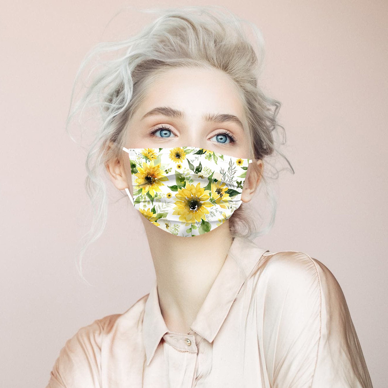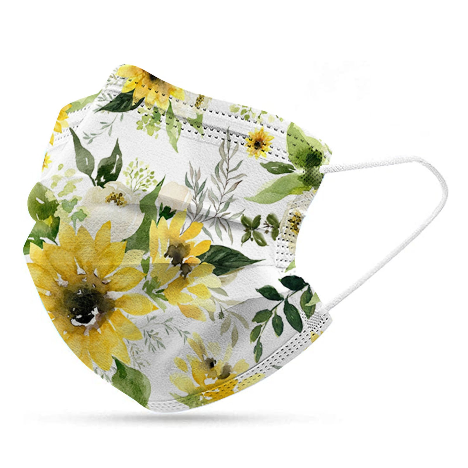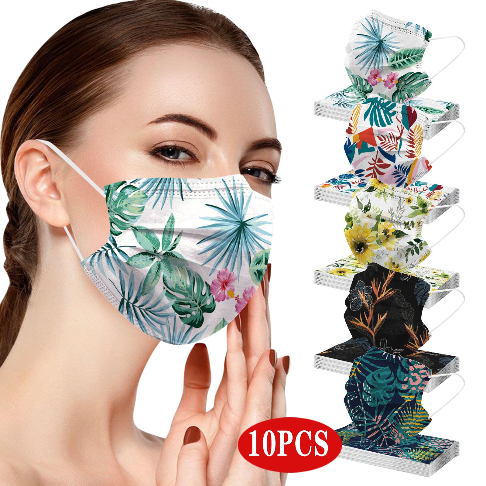 10 шт. взрослых Летние повседневные красивый кардиган, с цветочным принтом, 3-Слои одноразовая маска для лица