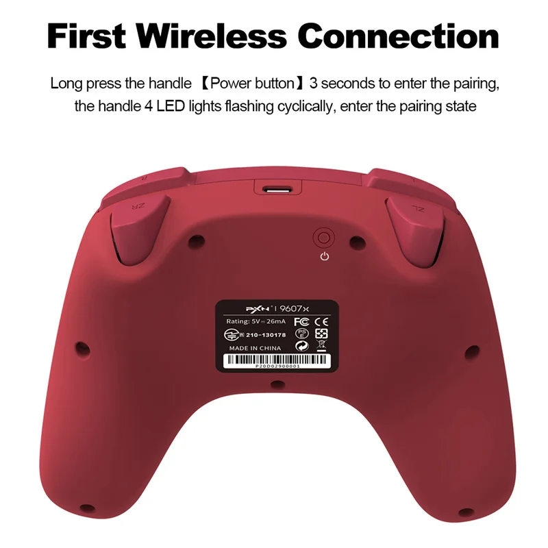 2. Беспроводное подключение: Откройте страницу подключения на хосте переключателя, нажмите и удерживайте кнопку питания на задней части контроллера, и светильник контроллера мигает. После этого он может быть успешно подобран.