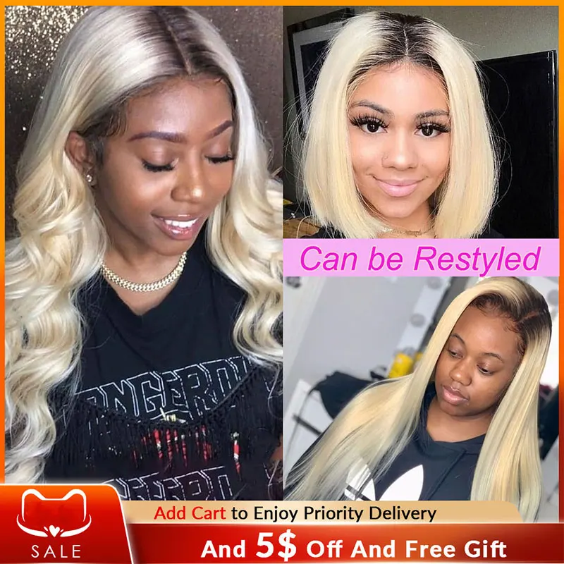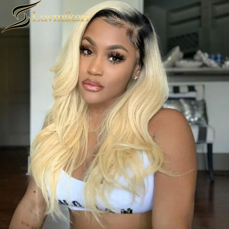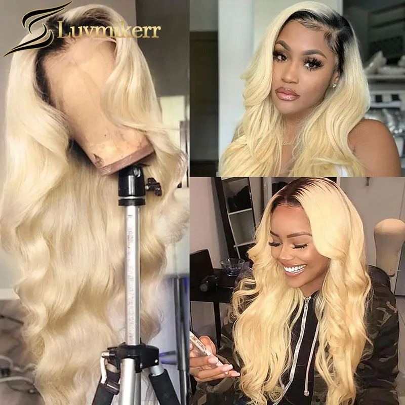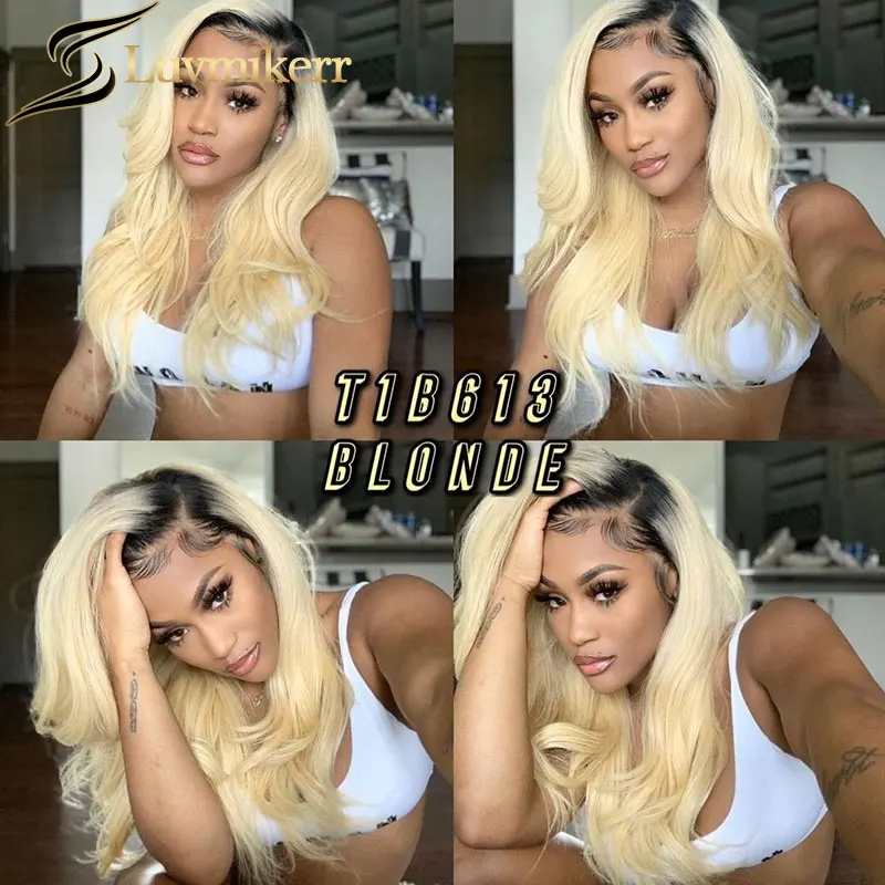 Эффектом деграде (переход от темного к 1B 613 светлые волосы Тело Волна 13x4 кружева передние человеческие волосы парики предварительно вырезанные Full hd прозрачный кружевной парик для черных Для женщин 30 дюймов