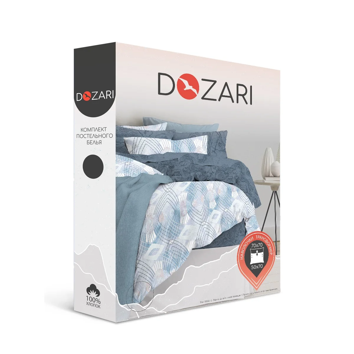 Постельное белье Lario 1,5 CN, 2 SP, евро, семья с наволочками трансформатор, бязь, хлопок, Василиса