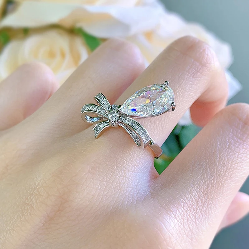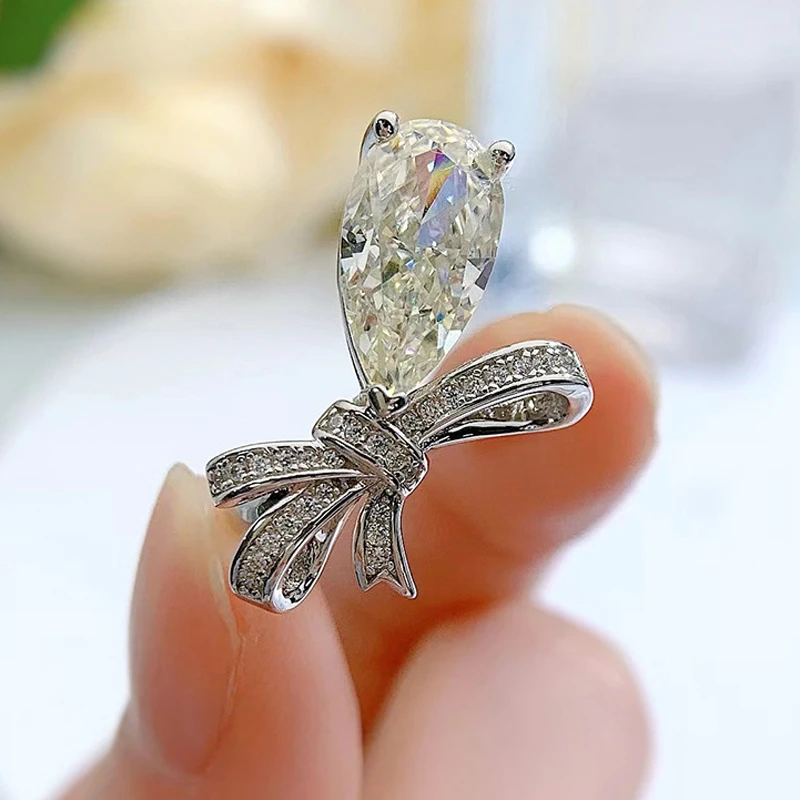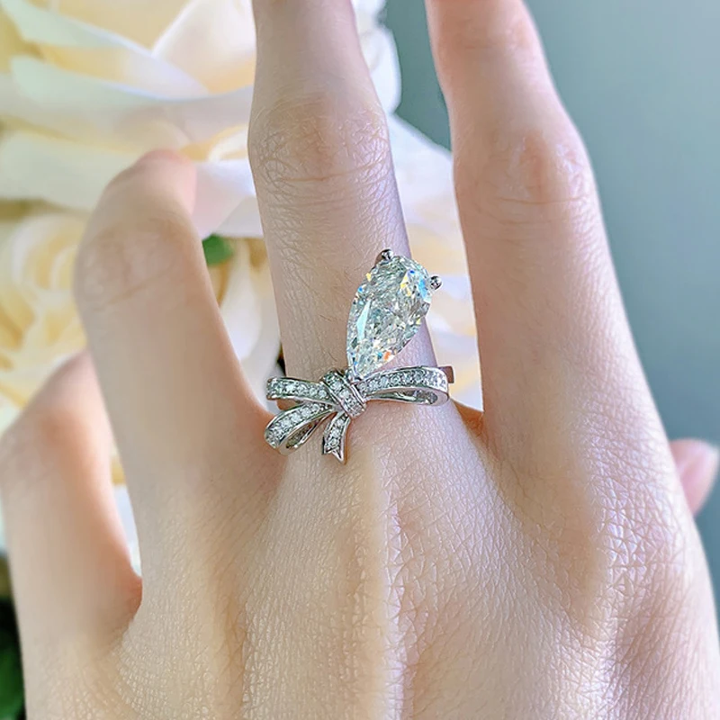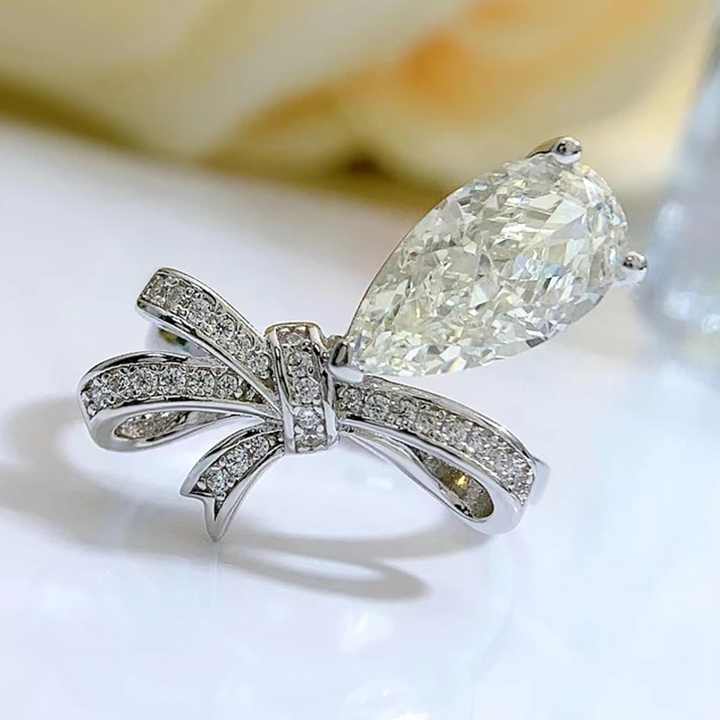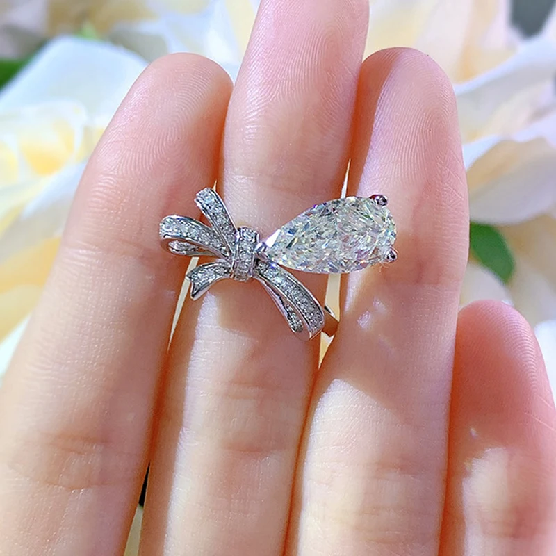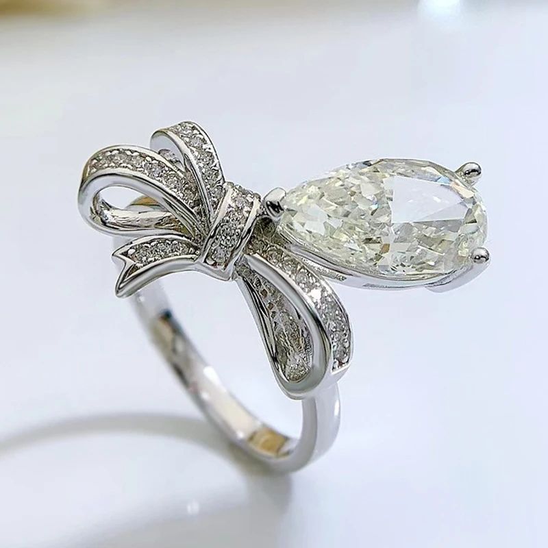 Женское кольцо с бантом Knobspin, роскошное кольцо из 100% стерлингового серебра 925 пробы с блестящим бриллиантом, ювелирные украшения для свадебной вечеринки