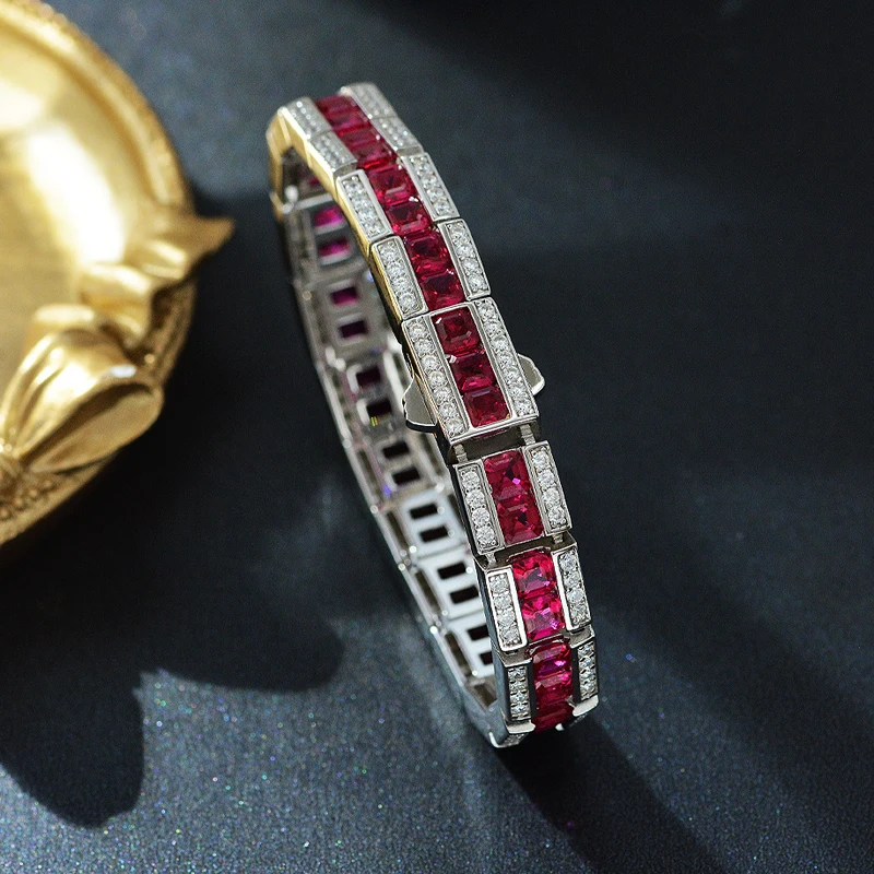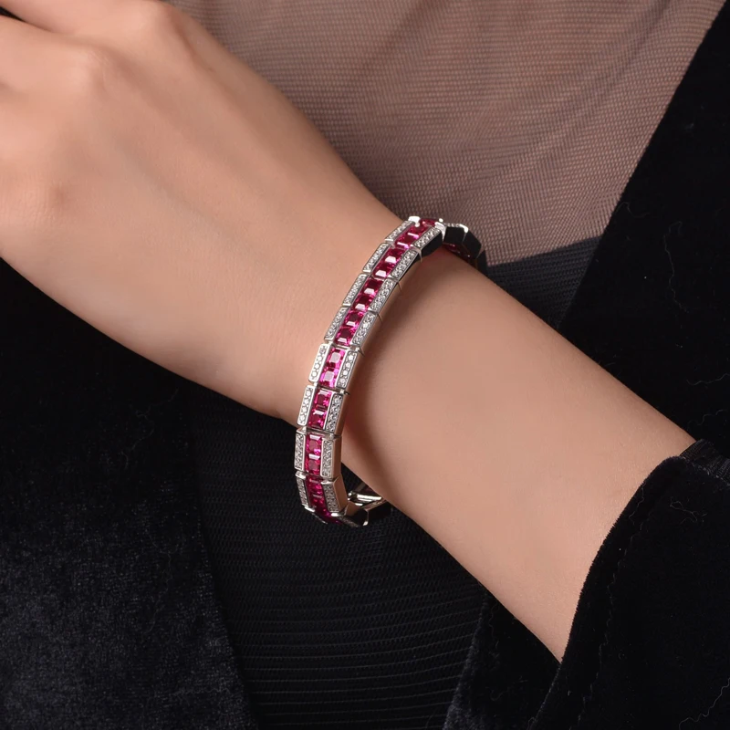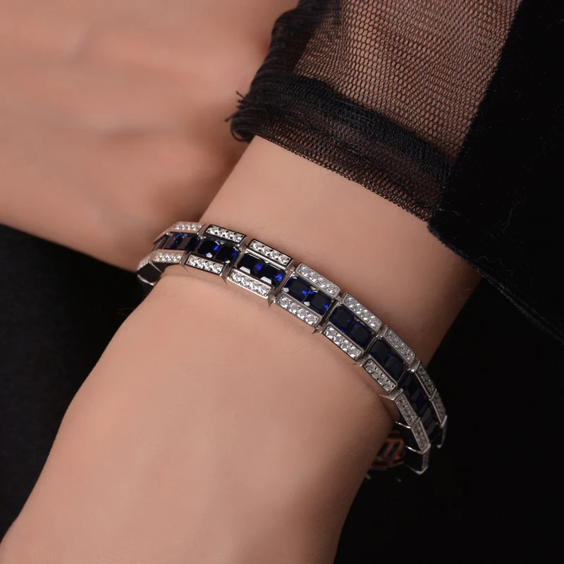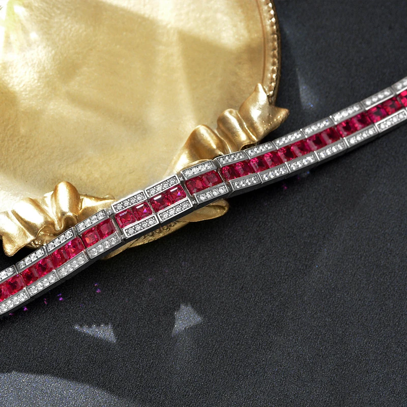 Название:Knobspin винтажные Рубин Сапфир ряд 4*4 мм Высокоуглеродистый бриллиант 100% Стерлинговое Серебро 925 пробы браслеты для женщин свадебные ювелирные украшенияДлина:Около 16 см или 17 см