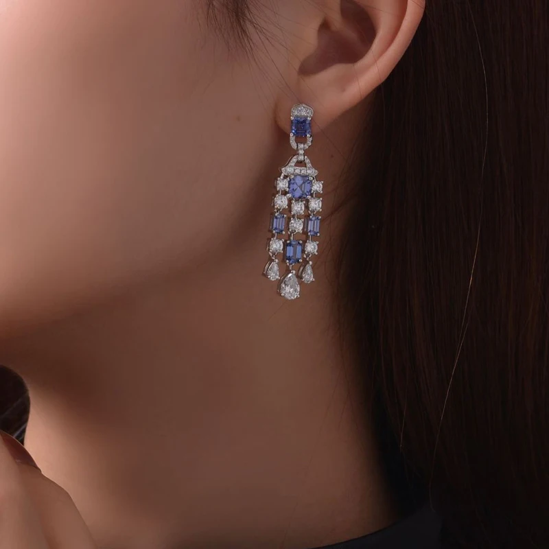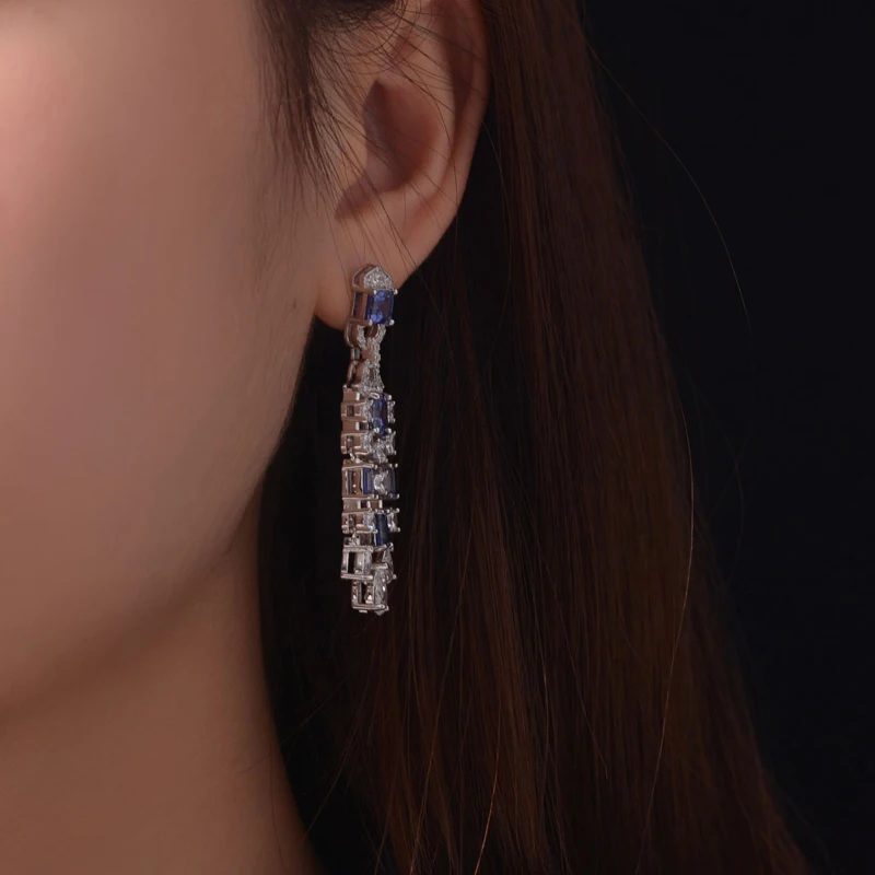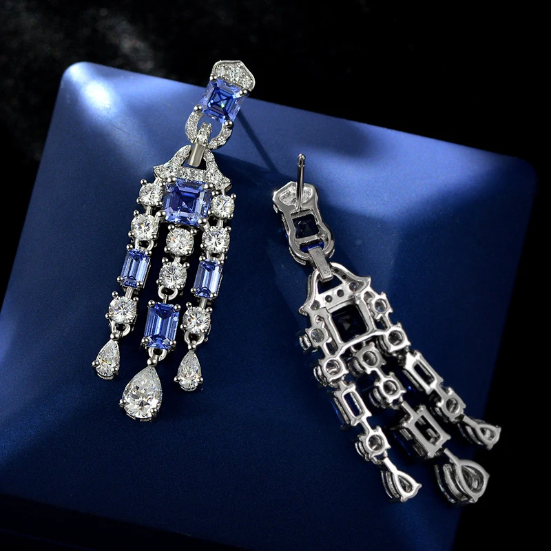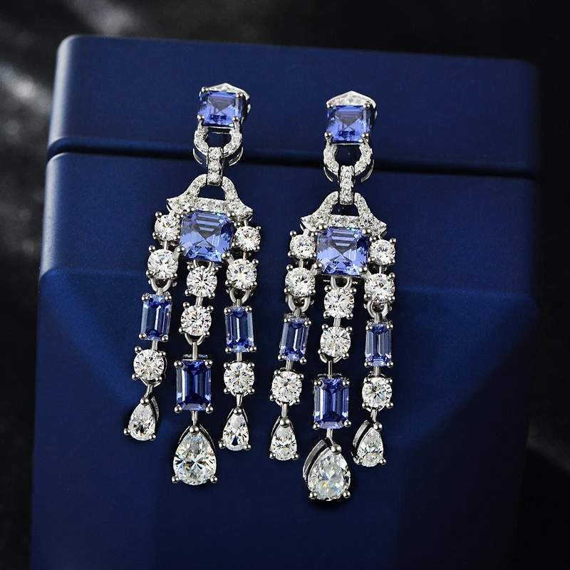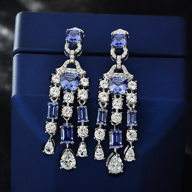 Knobspin Классические 100% Серебро 925 пробы танзанитовый сапфир 6*6 мм высокоуглеродистые алмазные свадебные висячие серьги женские ювелирные украшения