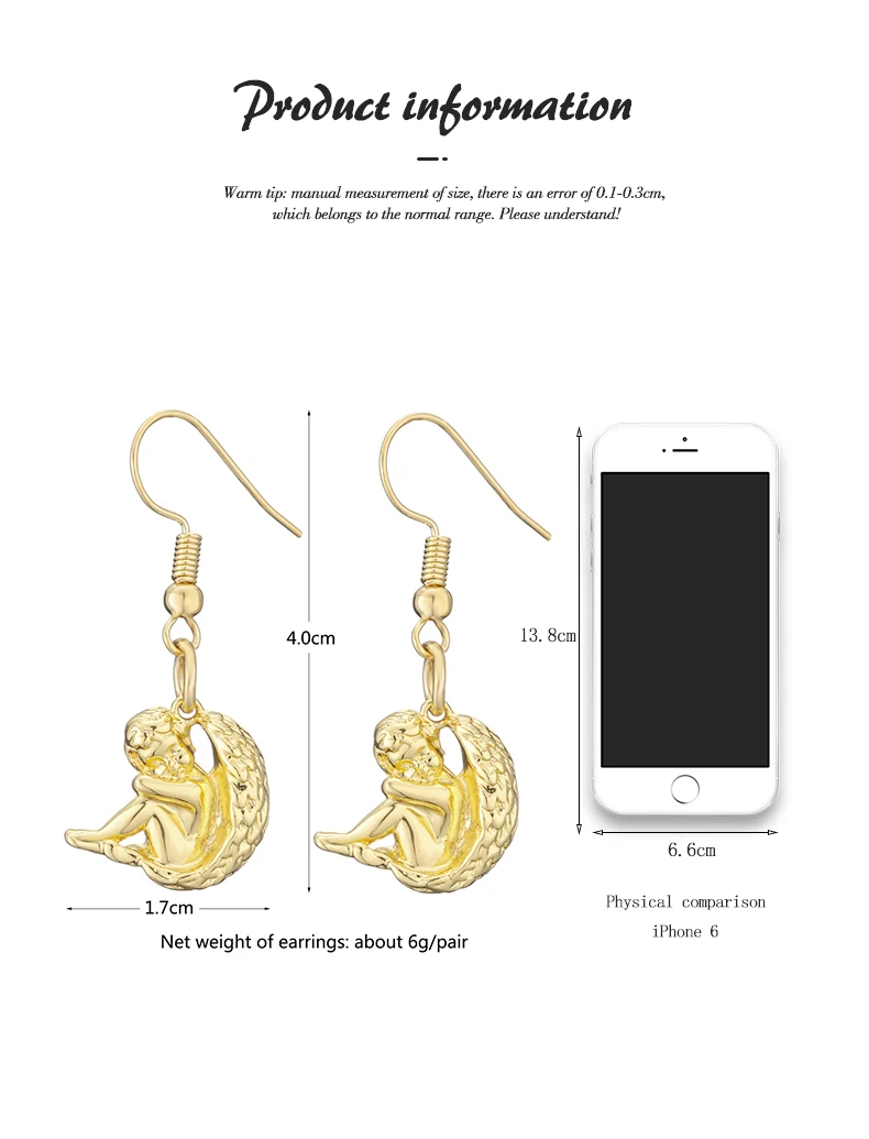 ★Item:Cring Coco Baby Pendant Earrings Unique Moon Gold Plated Women's Earring Hip Hop Jewelry Party Gifts Wedding Earrings for Women