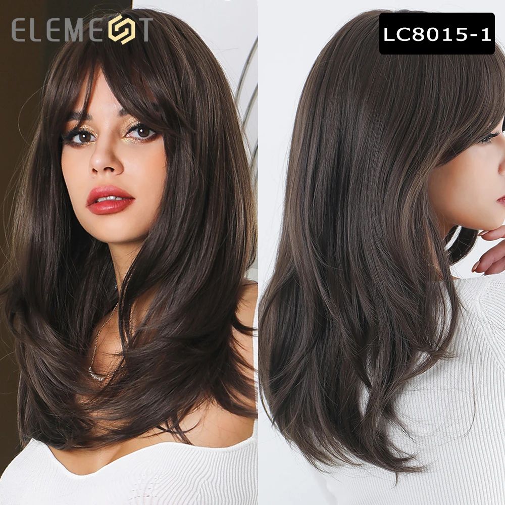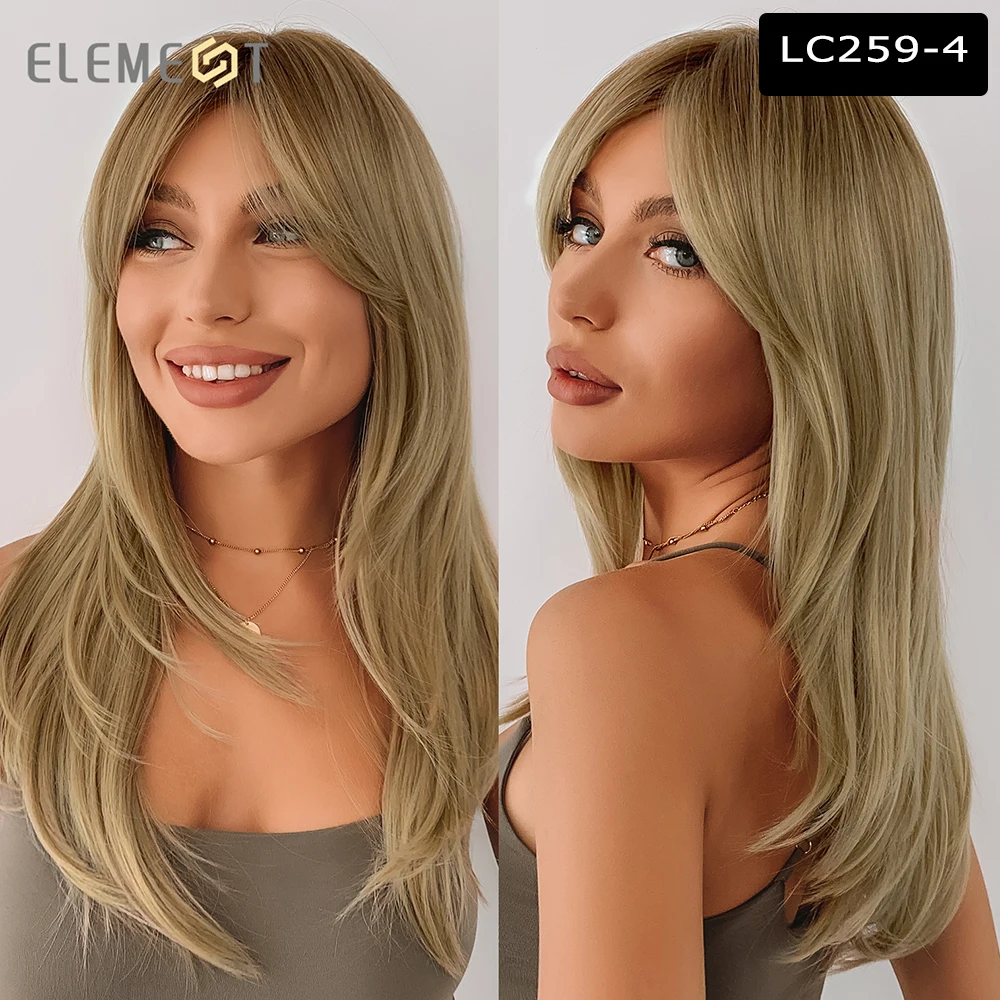 Element парики различных цветов для женщин длинные прямые волнистые коричневые светлые женские парики с челкой термостойкие синтетические волокна волос