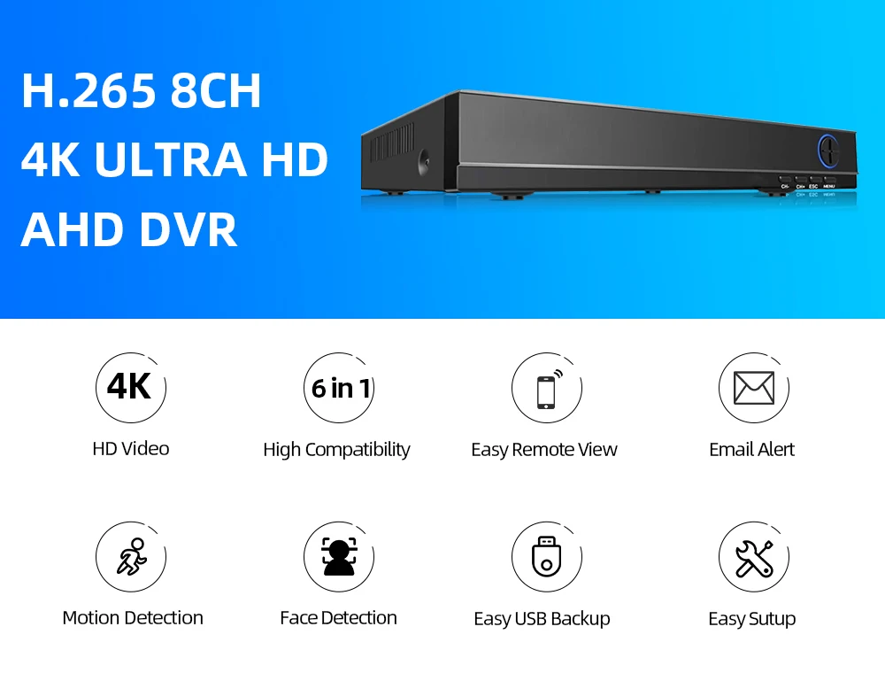 H.265 8CH 4K DVR характеристики