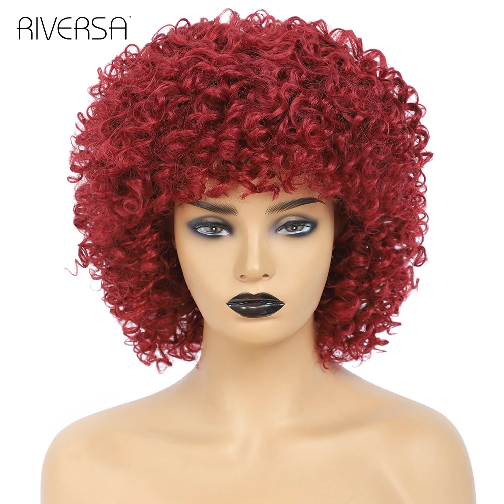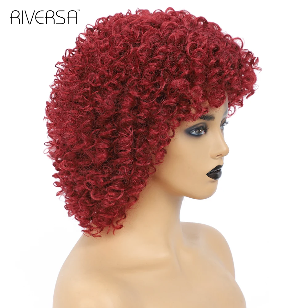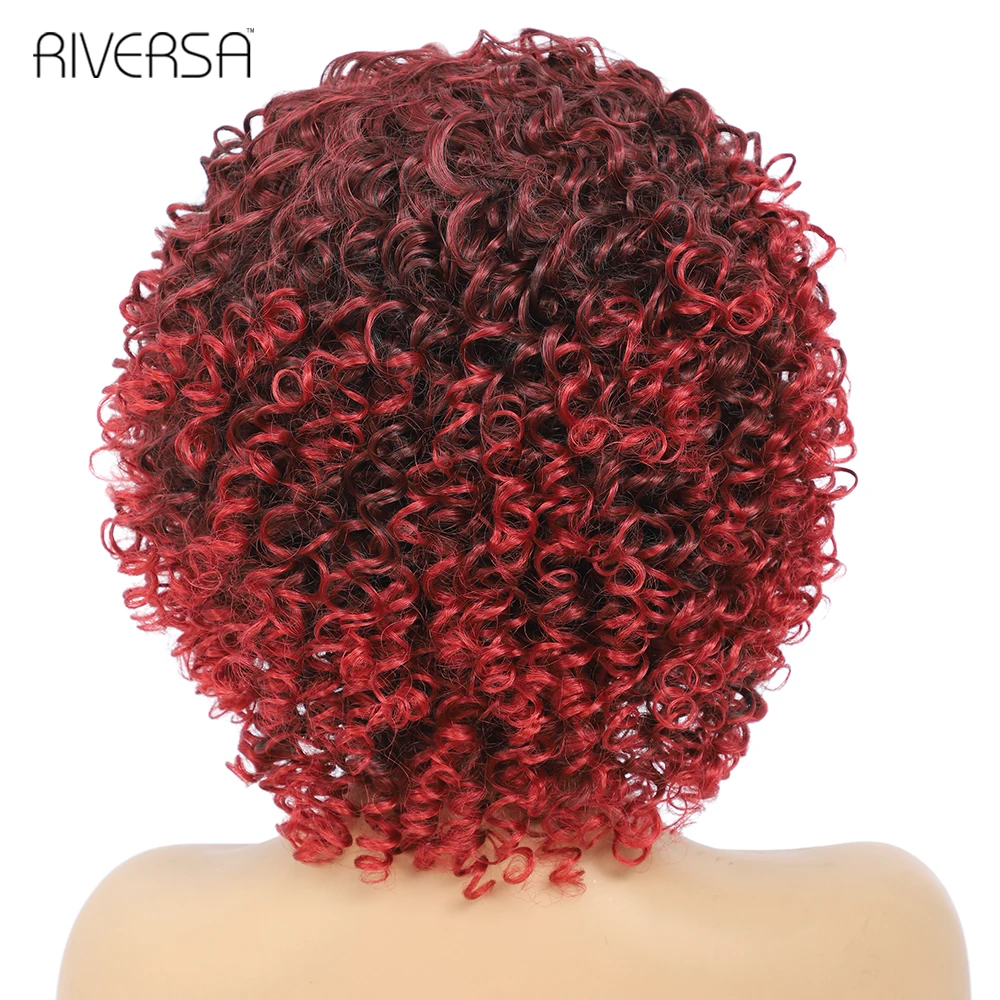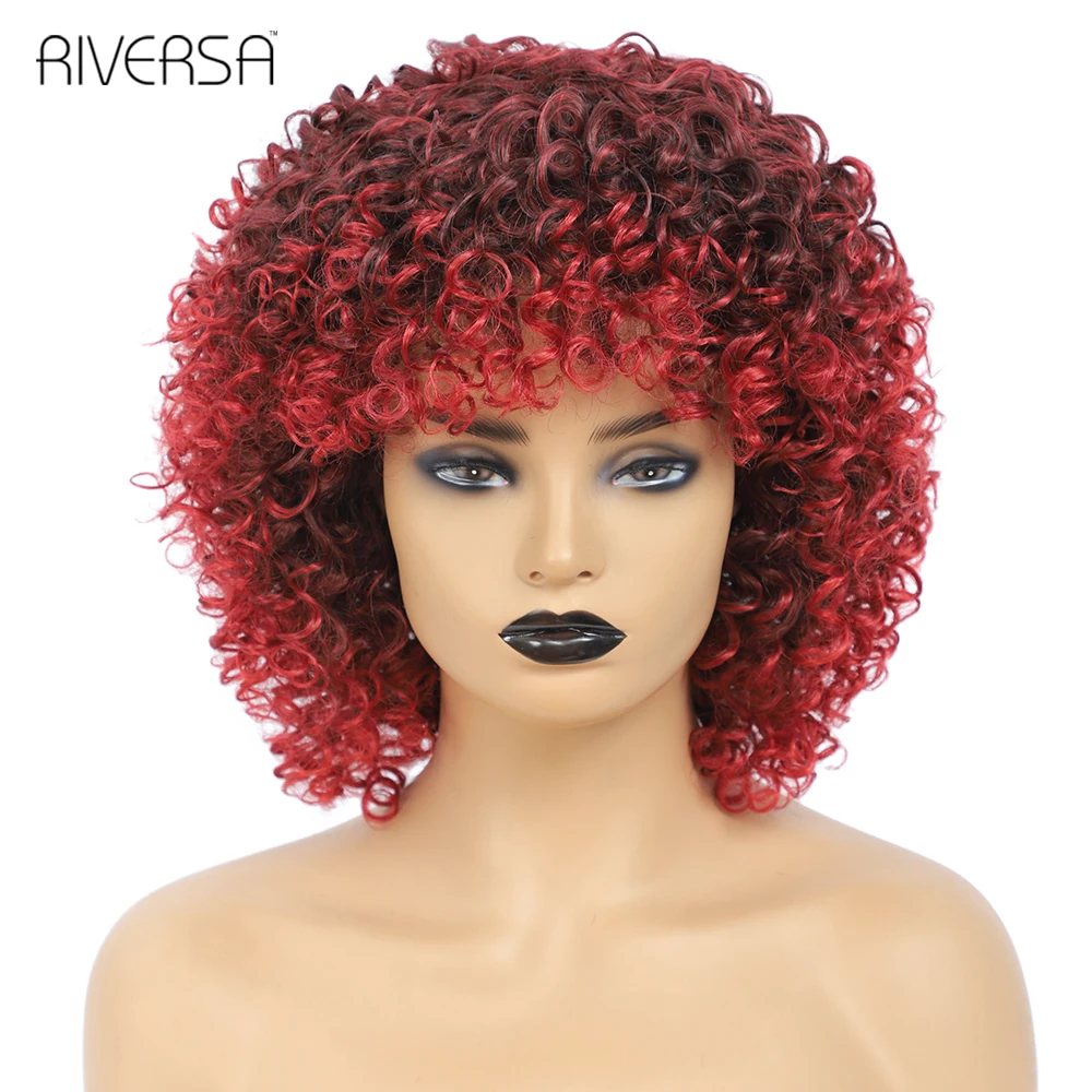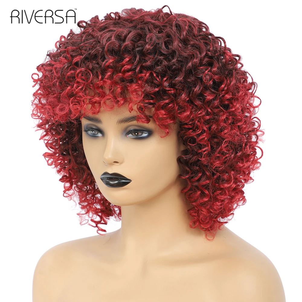 1B Ombre Gray 4-30 27-33 Red Soft Wigs Short Curly Wig With Bangs 14 inches Afro Kinky Curly Wig Synthetic Hair Wigs for Women