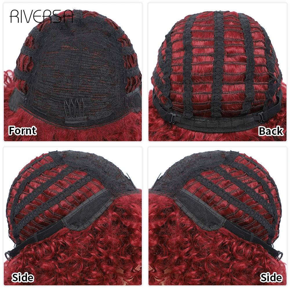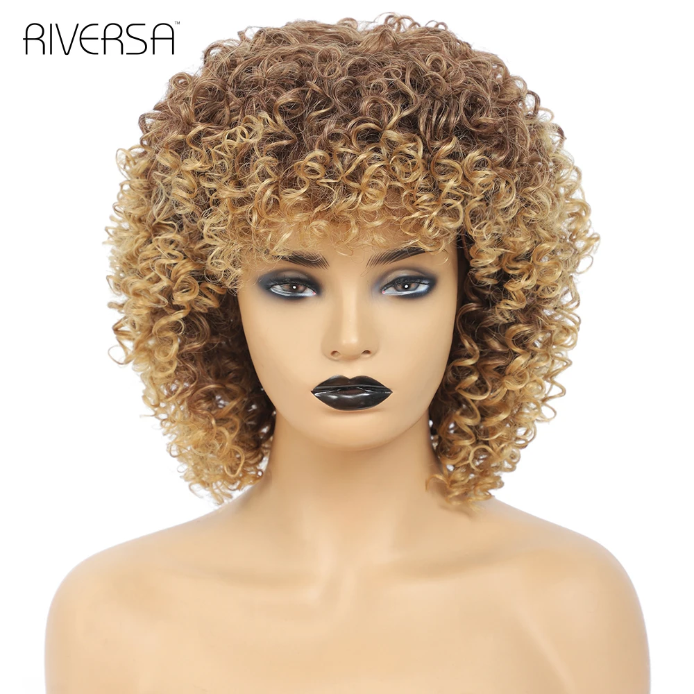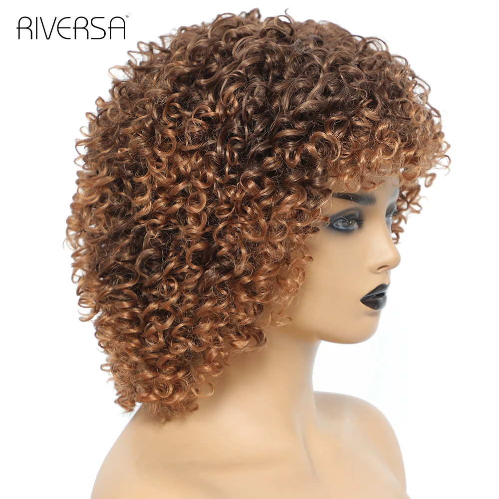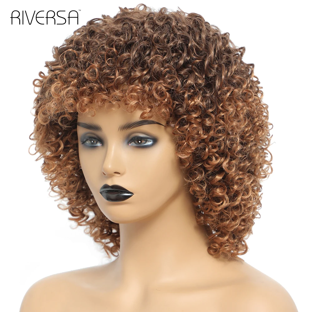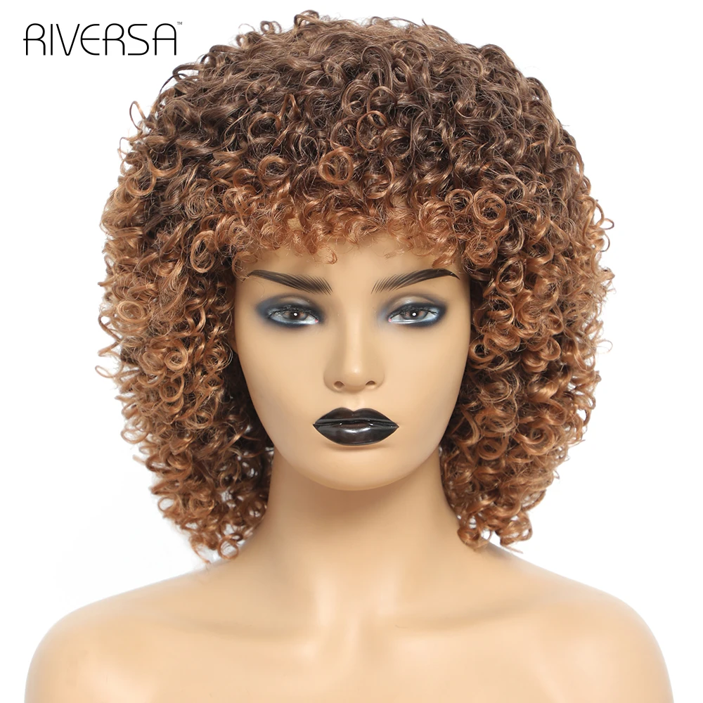 1B Ombre Gray 4-30 27-33 Red Soft Wigs Short Curly Wig With Bangs 14 inches Afro Kinky Curly Wig Synthetic Hair Wigs for Women