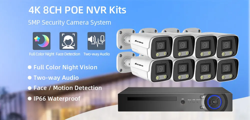 4K 8MP HD POE NVR 5MP полноцветная камера ночного видения система безопасности 8CH CCTV двухстороннее аудио AI распознавание лица комплект наружной ip-камеры