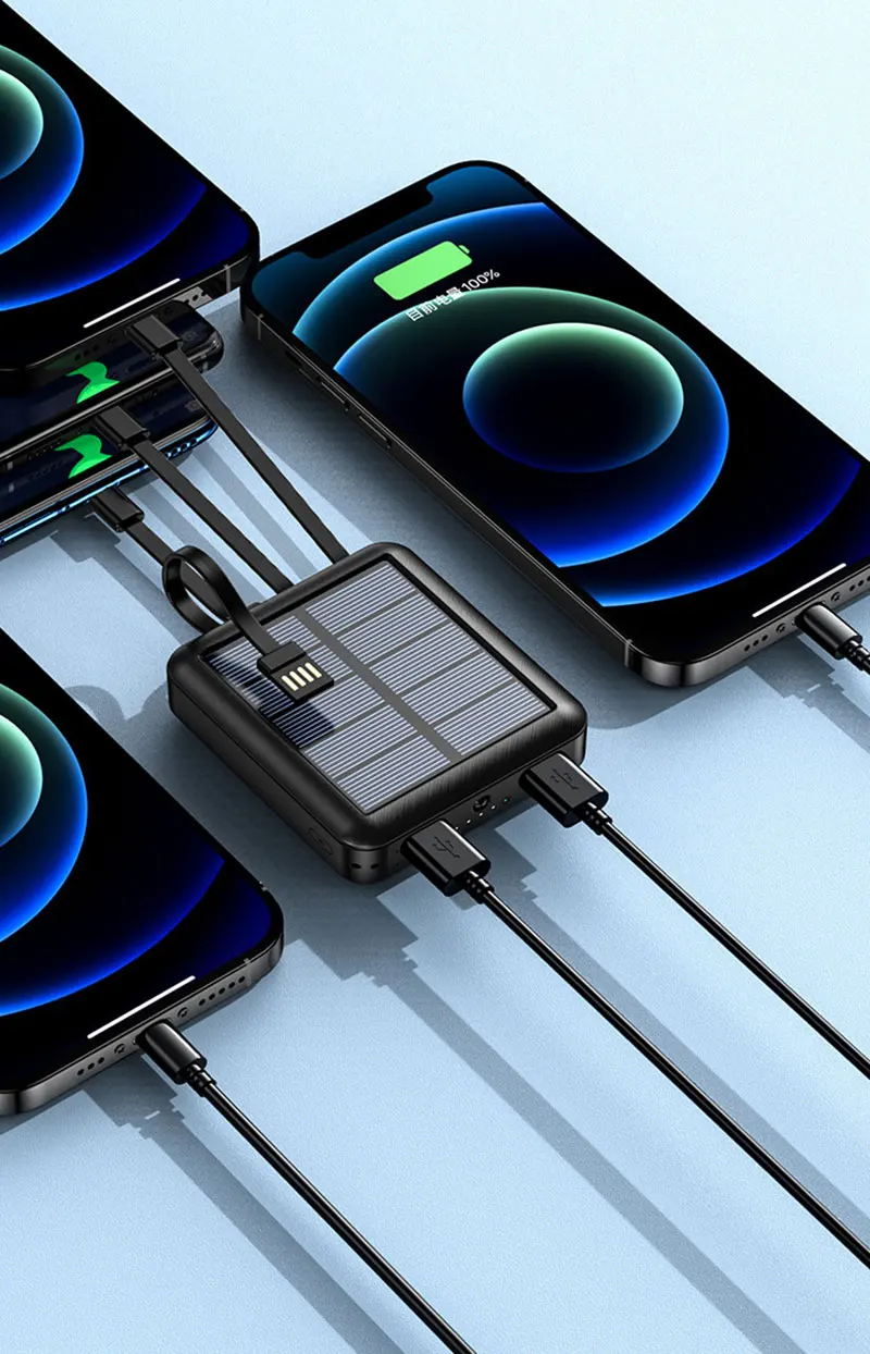 Reminder: Solar charging is an additional feature. Considering the small panel size, large capacity and uncontrollable sunlight intensity, the solar charging option can be used as a backup solution, while other power sources are not available. Make sure that the power bank is fully charged before traveling.