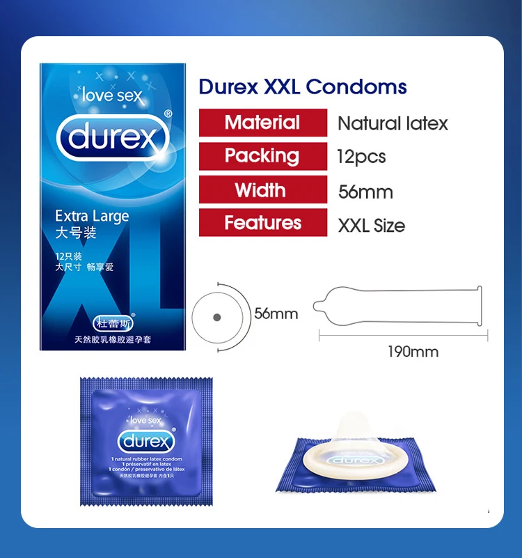 Презервативы Durex 56 мм XXL Экстра большой размер презервативы для большого пениса размера плюс размер натуральный латекс презерватив рукав для пениса для взрослых секс-продукт