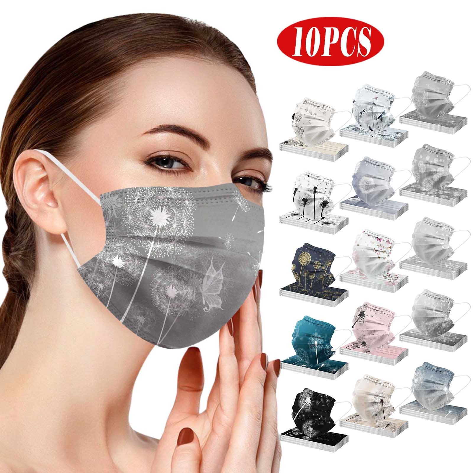 10 шт взрослых ежедневно красивые цветочные принты 3 слоя одноразовые маски для лица