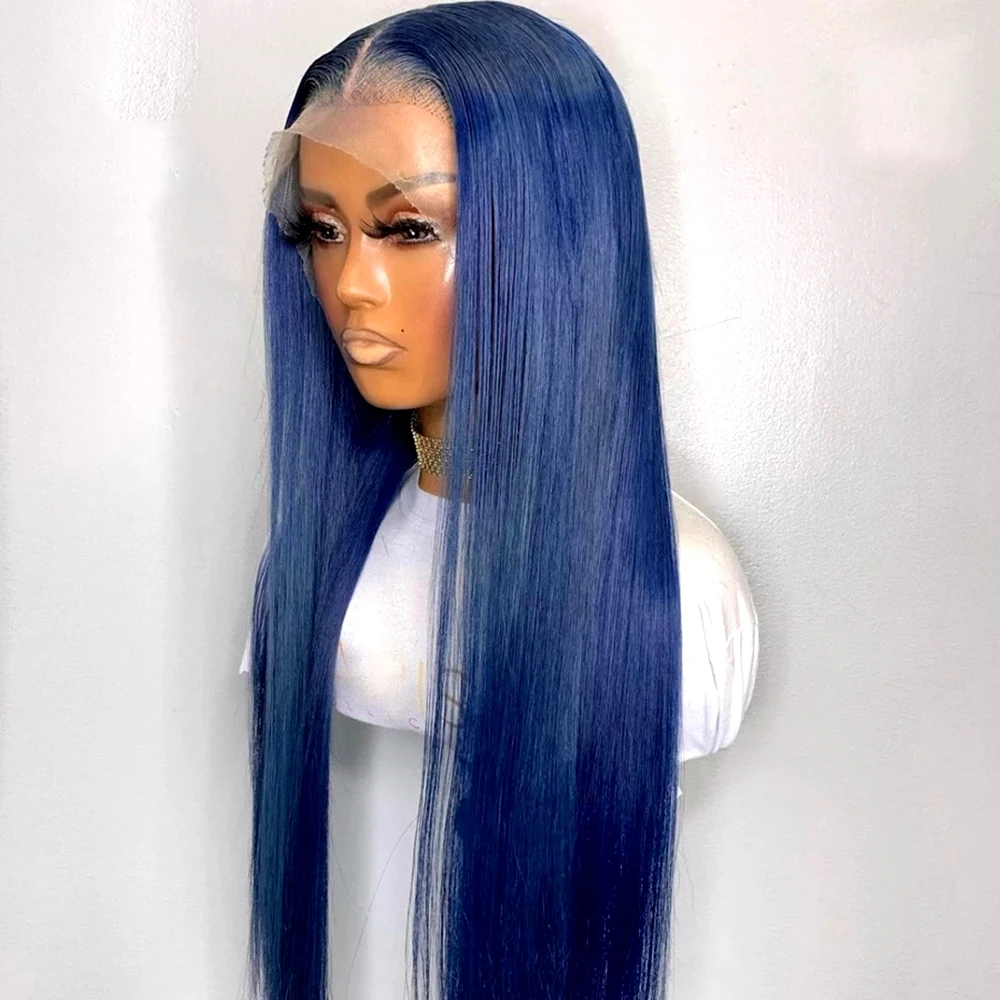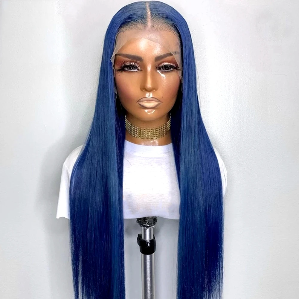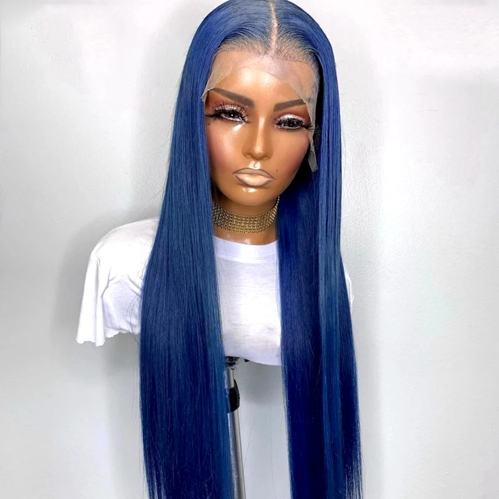 Kryssma темно-синий цвет синтетический кружевной передний парик шелковистые прямые термостойкие волокна повседневные волосы парики для женщин средняя часть парик