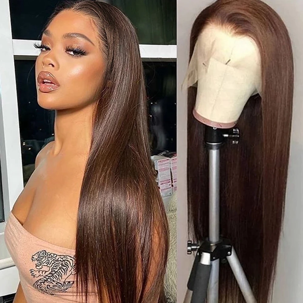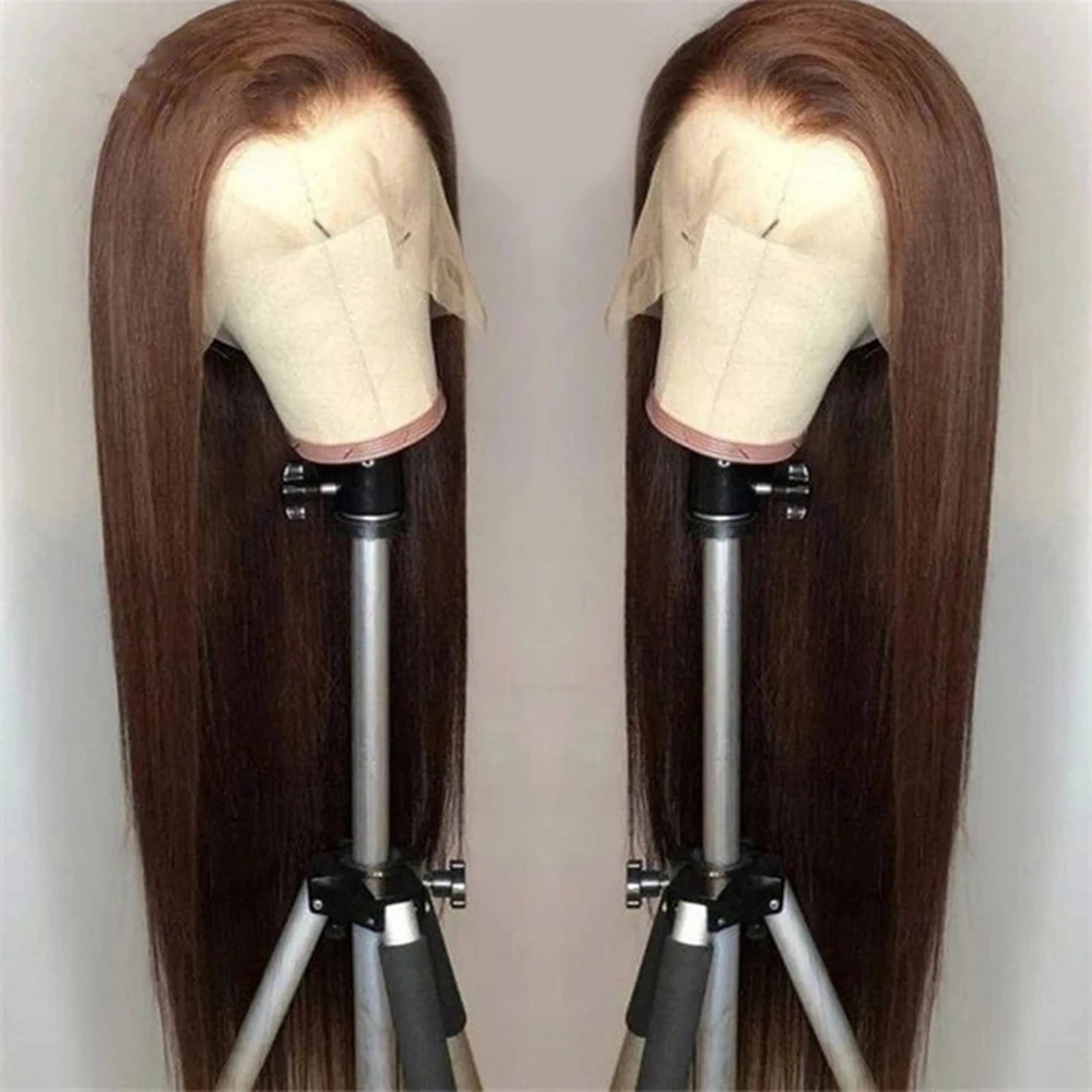 Kryssma натуральные коричневые синтетические волосы на кружеве спереди парик Средняя часть длинная прямая шнуровка, парики для женщин бесклеевая дешевая мода косплей