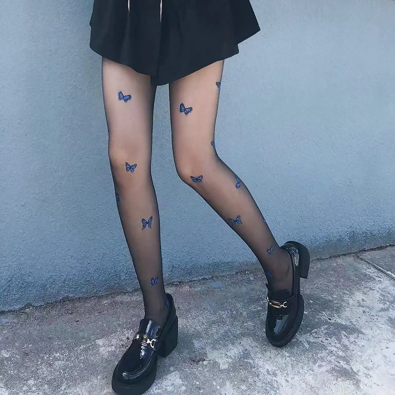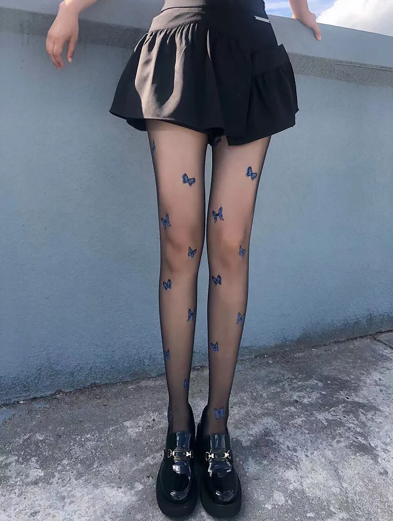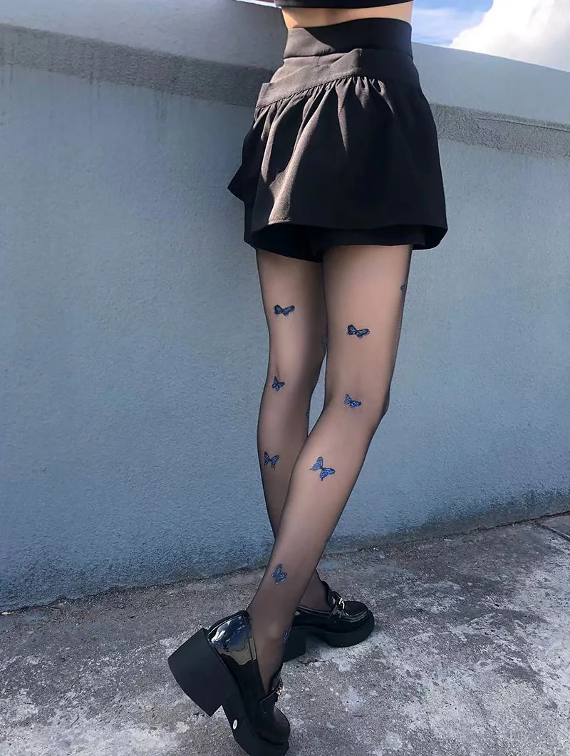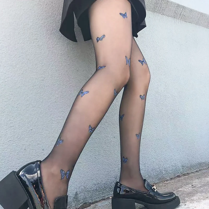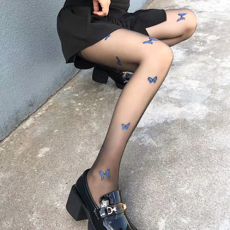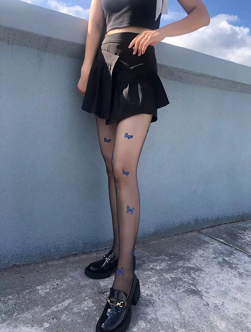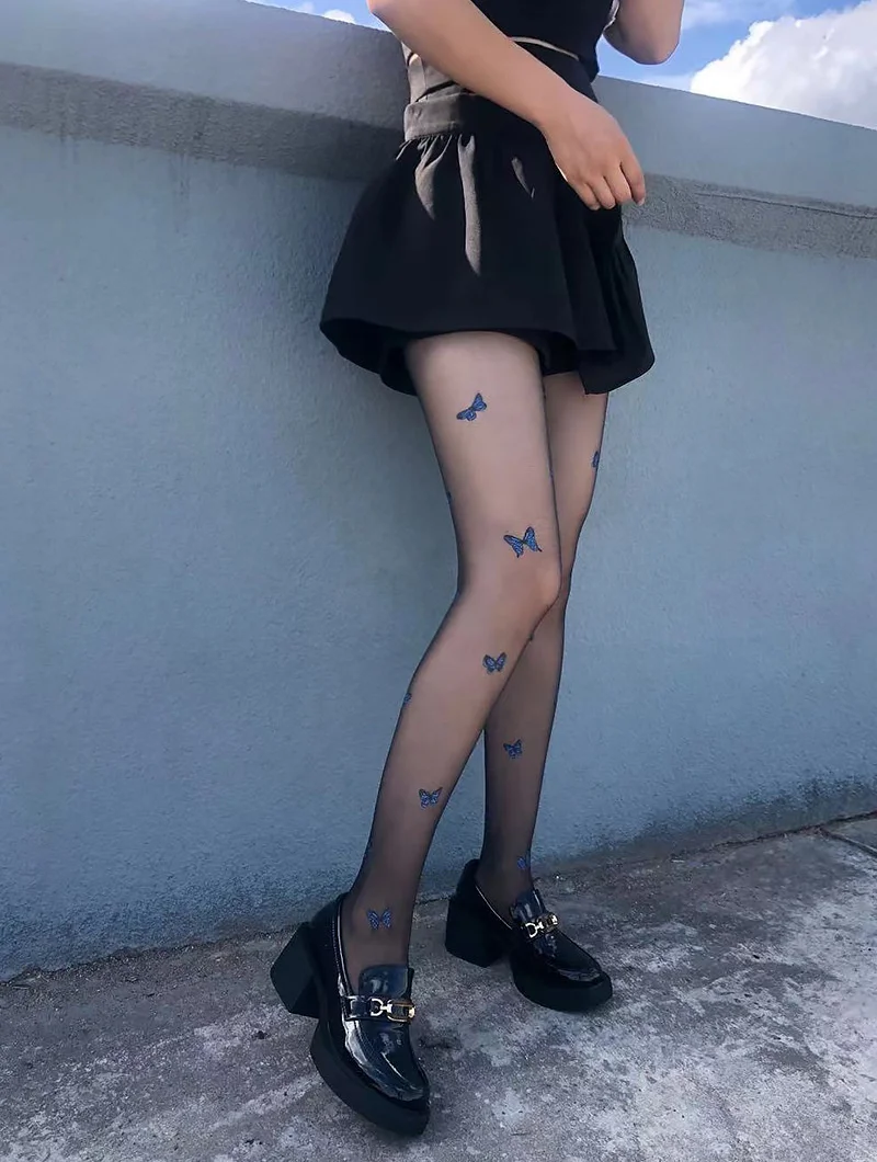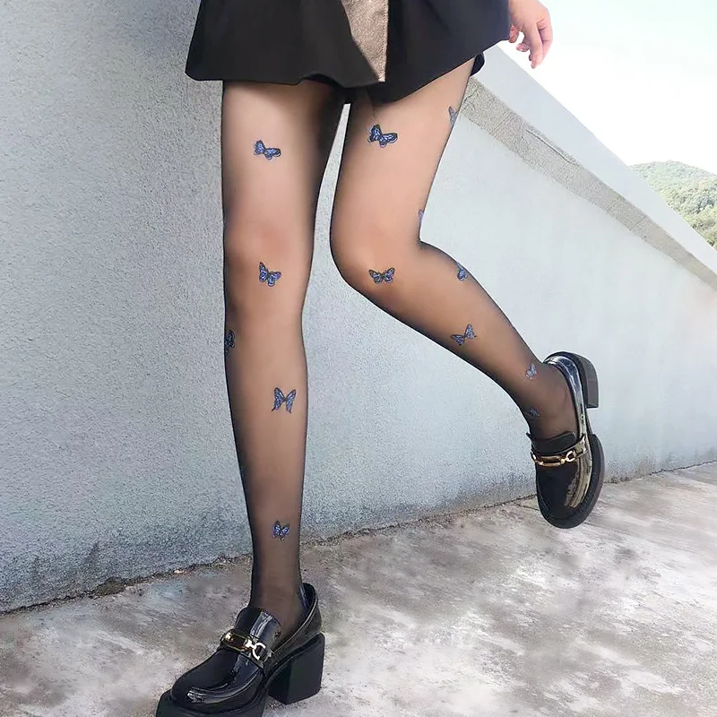 SP & CITY/Синие сексуальные черные колготки с принтом бабочки, женские тонкие прозрачные шелковые чулки, дышащие модные колготки