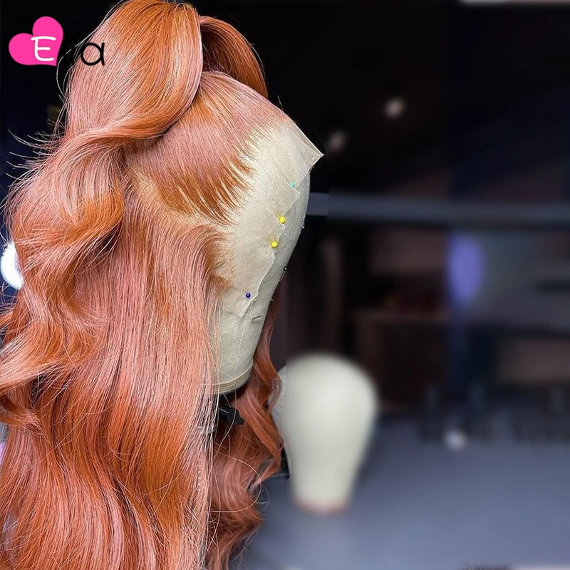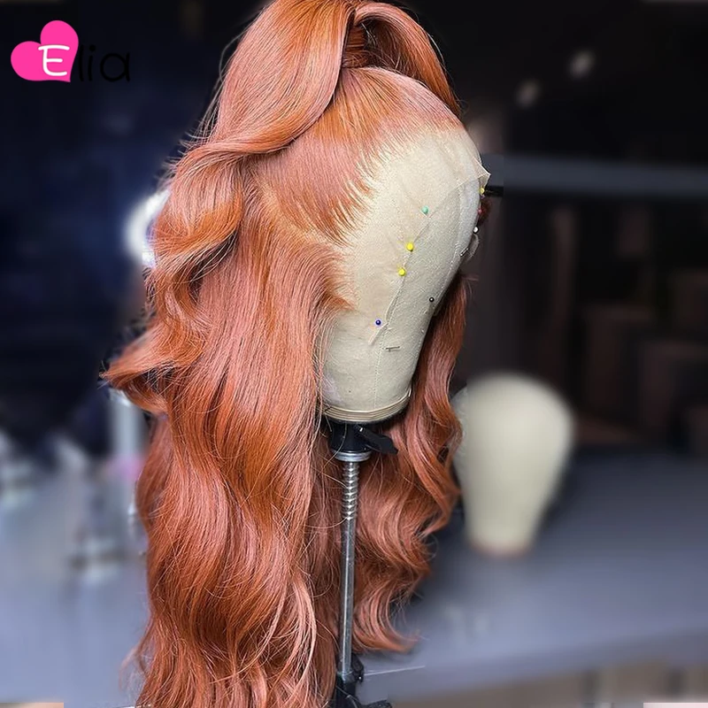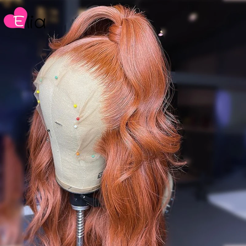 Тыква Оранжевый Синтетические волосы на кружеве человеческих волос парики 13x6 синтетические волосы объемной волны волосы парик бразильский Волосы Remy прозрачный кружевной парик из натуральных волос