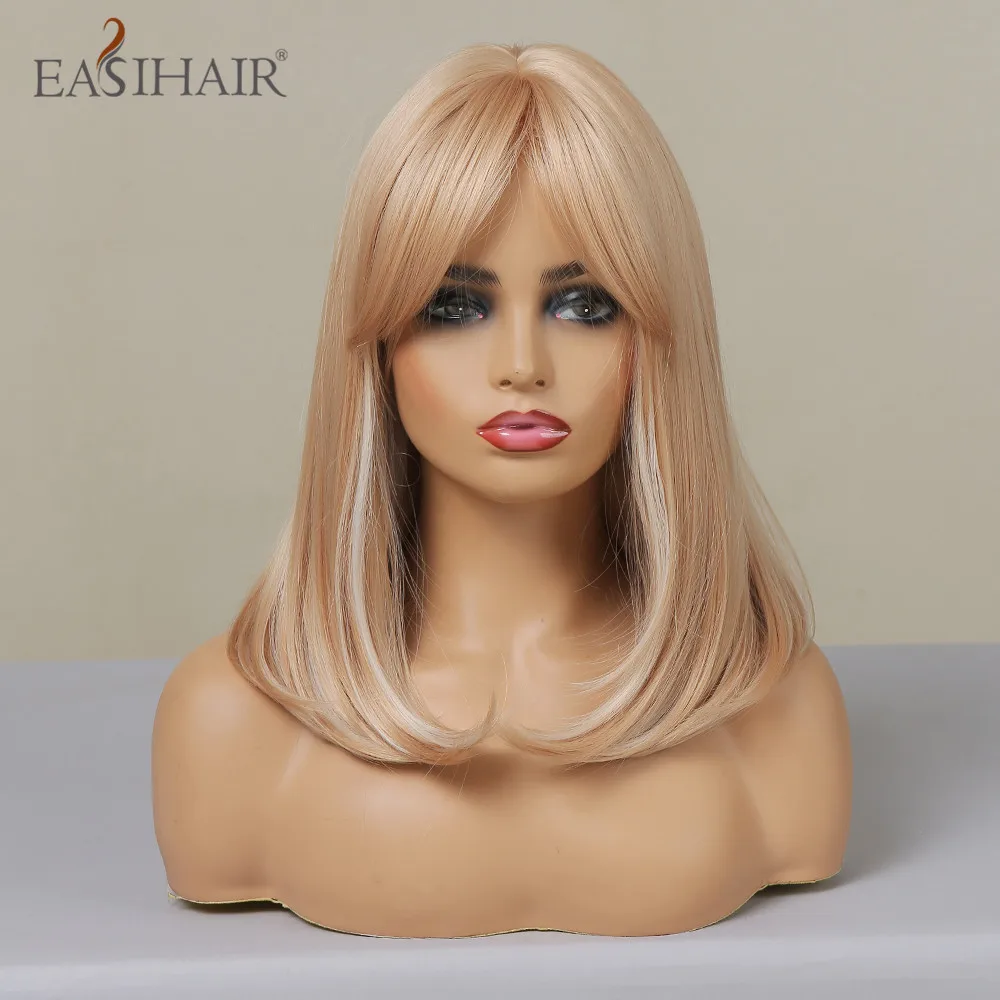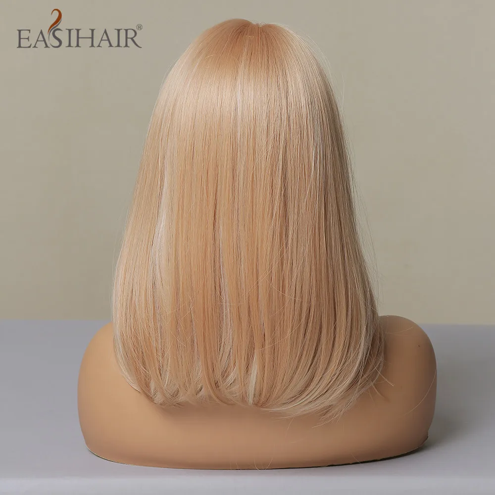 EASIHAIR Боб клубника блонд синтетические парики с челкой Натуральные Прямые волосы для женщин термостойкие ежедневно косплей Лолита парик