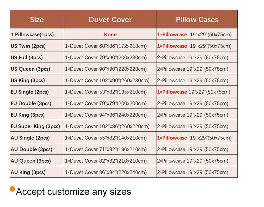 О: Таблица размеров на странице описания товара, Пожалуйста, измерьте размер вашего одеяла и выберите идеальный размер. Если вы не уверены в этом, свяжитесь с нашей службой поддержки клиентов. Принимаются любые размеры по индивидуальному заказу.