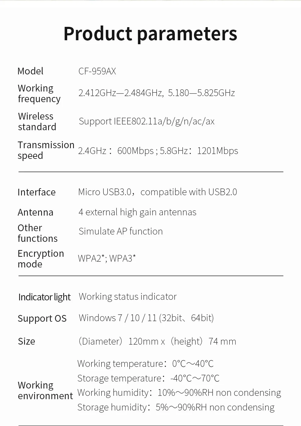 Разработанный для создания полной связи WiFi6, CF-959AX полностью демонстрирует преимущества WiFi6-enabled routing и производительность мобильный телефон.