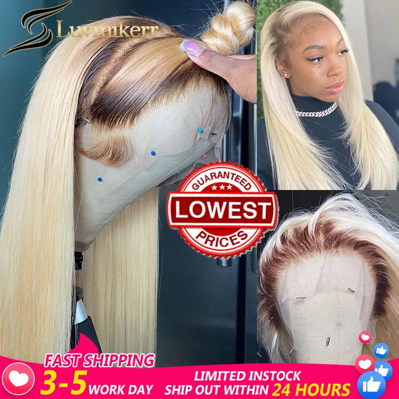 HD Омбре коричневый блонд 613 13x 4 кружевной передний парик цвет прямой кружевной передний парик предварительно собранные человеческие волосы полный для черных женщин 30 дюймов