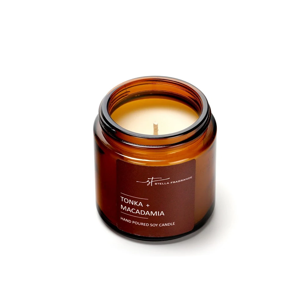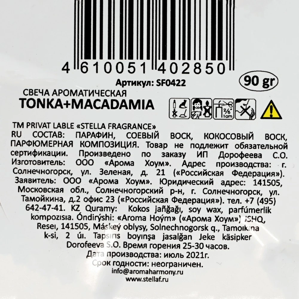Ароматическая свеча ручной работы из натурального воска с нежным сочетанием ароматов сахарной пудры, ванили, гиацинтов, макадамии, бобов тонка и мускуса.