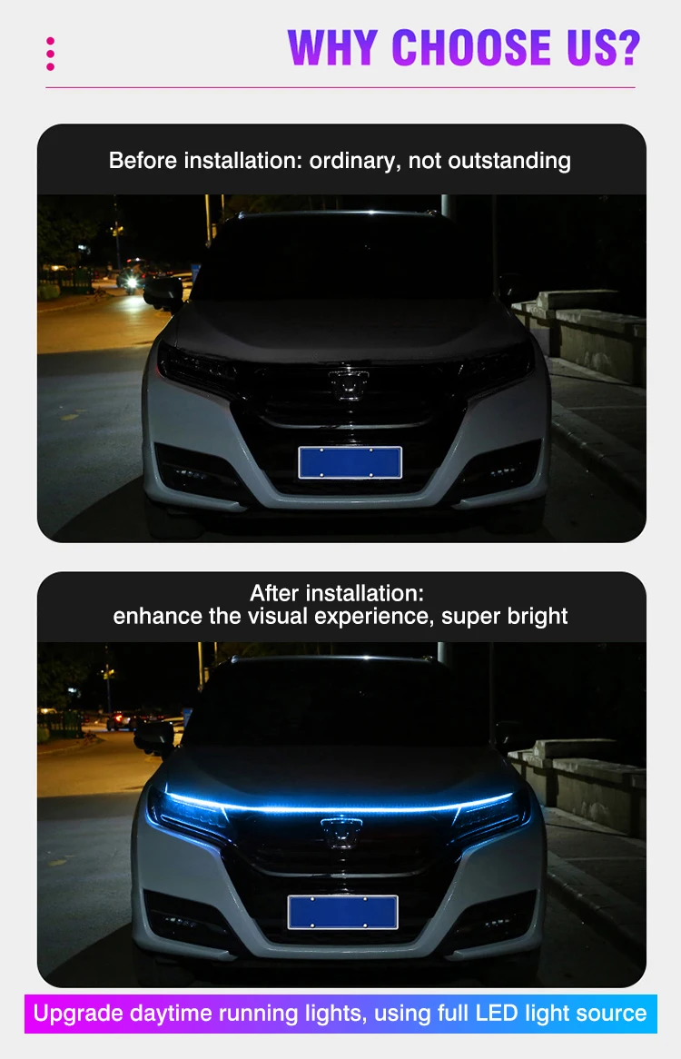 Широкий спектр применения может использоваться в качестве дневных ходовых огней, номерных знаков, педальных огней, капота и домашнего украшения.