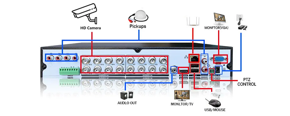 1.H.265 16CH AHD цифровой видеорегистратор;