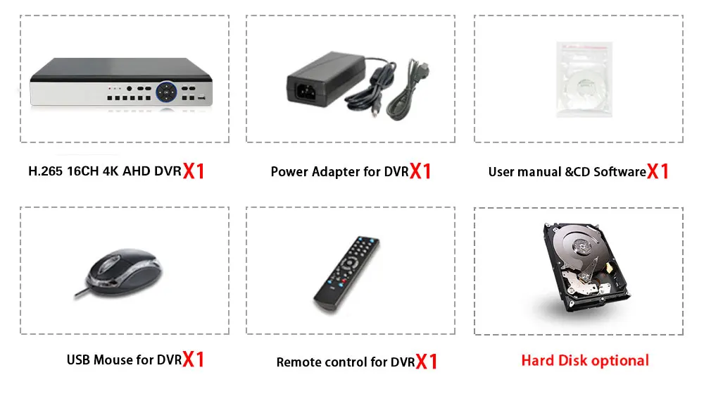 1 х H.265 16CH 4K 6 в 1 AHD DVR гибридный цифровой видеорегистратор;