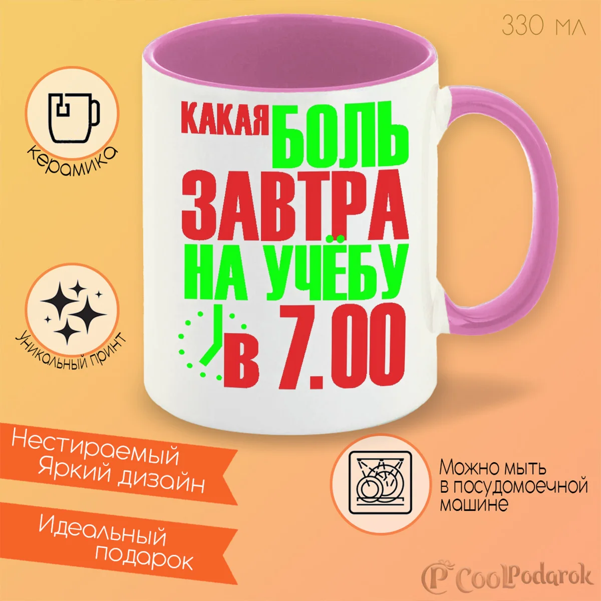 Название бренда CoolPodarok Тип Питьевой Посуды Кружки Происхождение Россия Форма Другое Материал Керамика Аксессуары Нет Стиль Другое Тип Чай Кружки Описание Стандартный Объем (мл) 330внешний вид товара