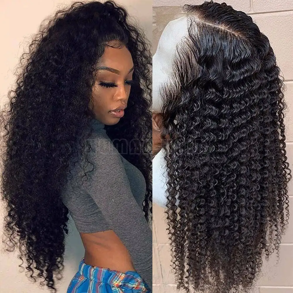 Афро парик из бразильских курчавых, HD Синтетические волосы на кружеве al парик 13x4 монгольские волосы глубокая волна прозрачный Синтетические волосы на кружеве парики из натуральных волос для Для женщин Lemoda