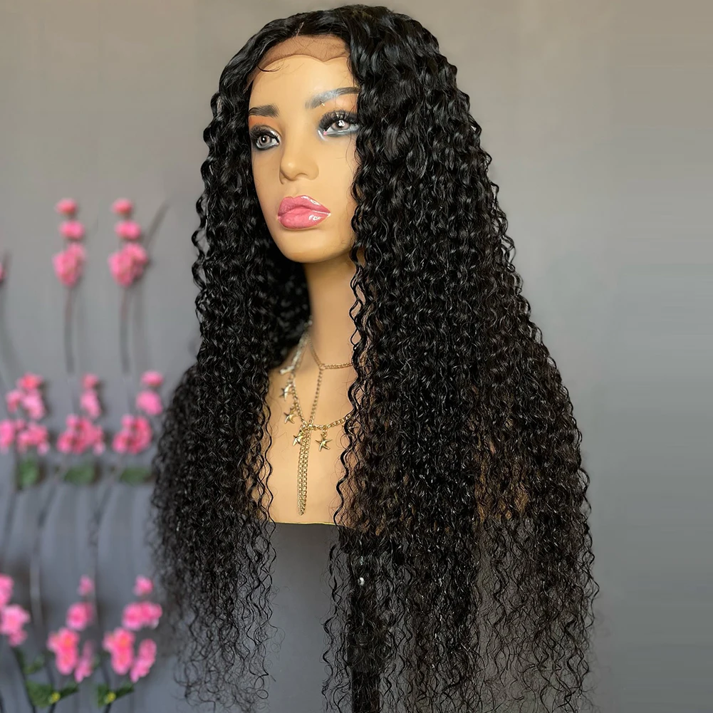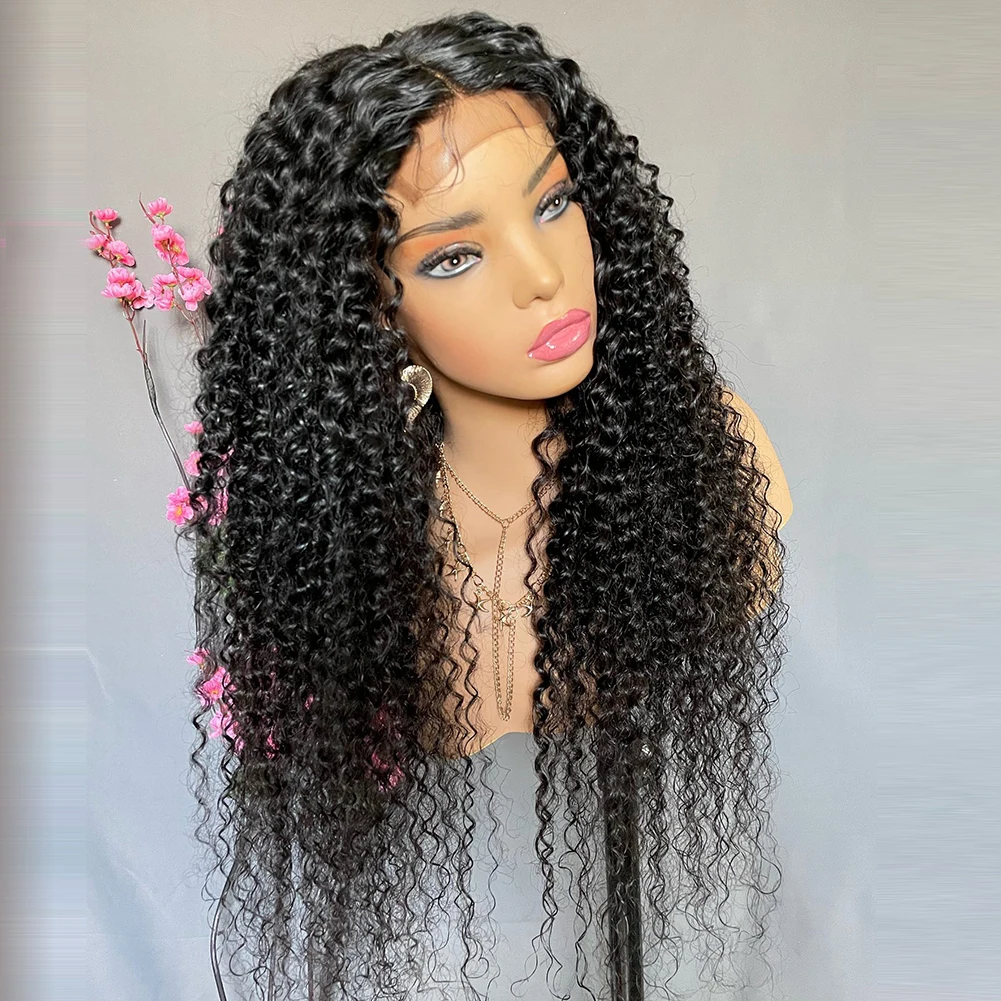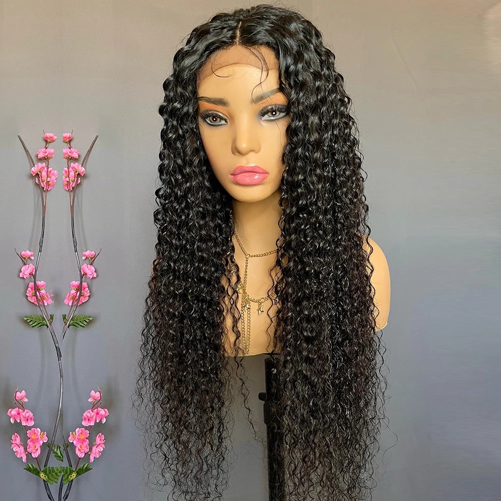 Парики для чернокожих женщин с глубоким волнистым синтехическим кружевом, предварительно выщипанные волосы для детей, кружевные передние парики, темно-кудрявые черные парики