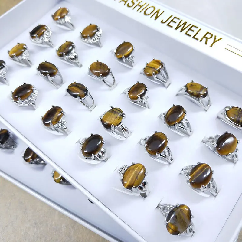Оптовая продажа 20 шт микс тигровый глаз камень палец человек Rng ювелирные изделия кольца для женщин подарок серебряное кольцо в форме цветка