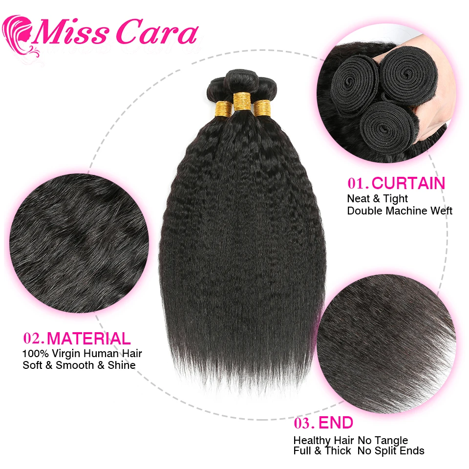 Бразильские кудрявые прямые волосы, 4 пряди, 100% человеческие волосы, пряди, натуральный цвет, Miss Cara Non Remy, человеческие волосы для наращивания