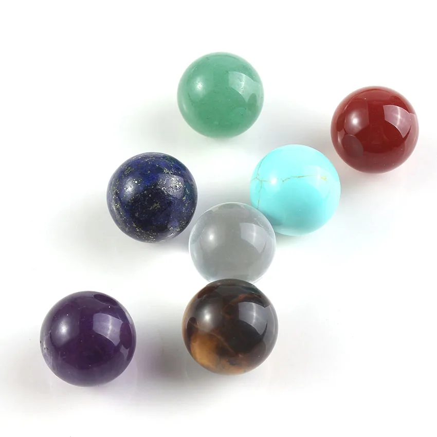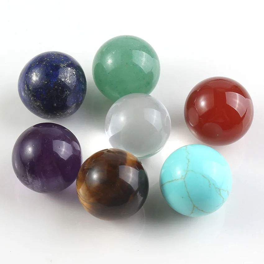 KFT Natural 16mm 7 Chakra Stone Round Beads Healing Crystal Quartz Reiki Seven Array Feng Shui Small Ornaments with Home Decor