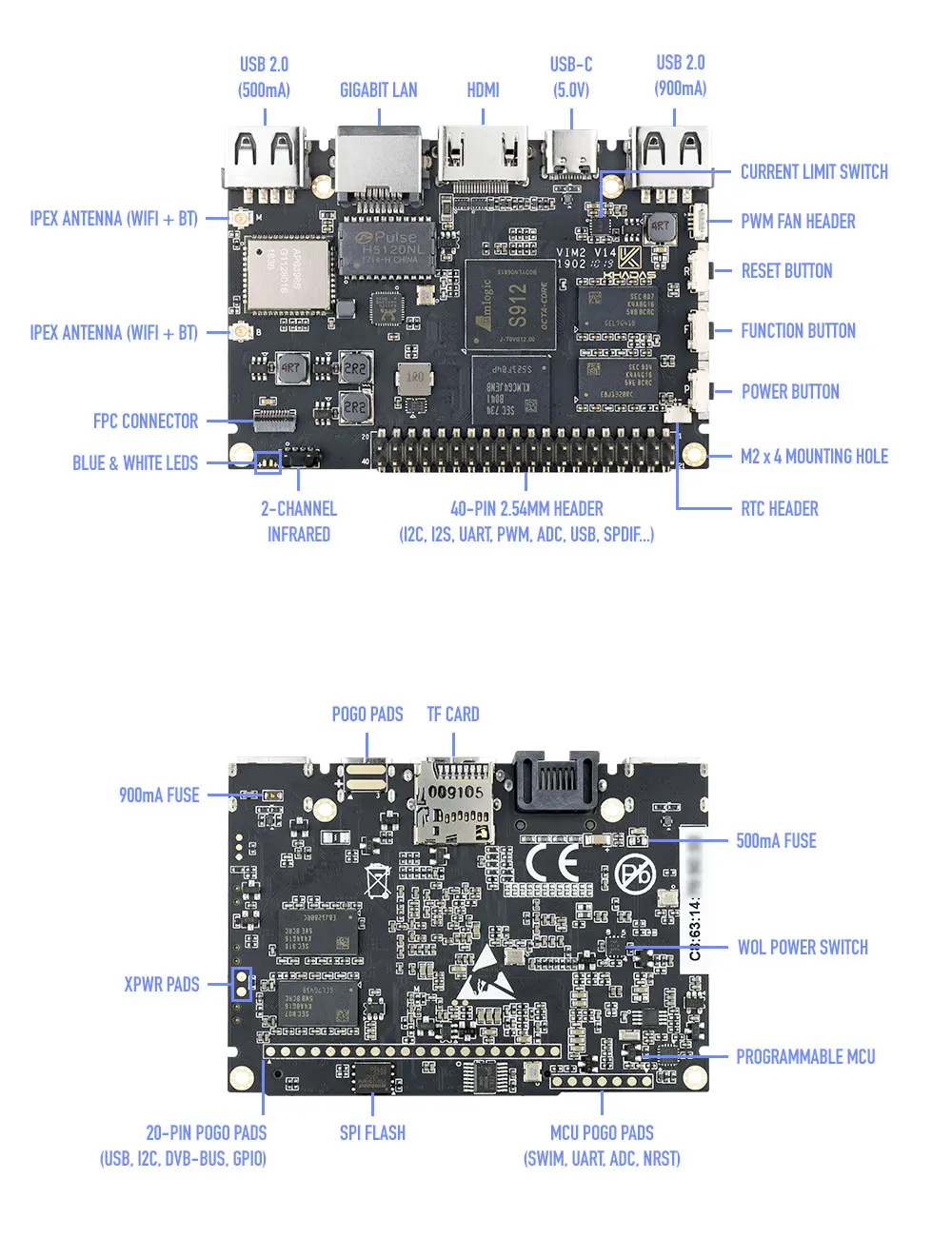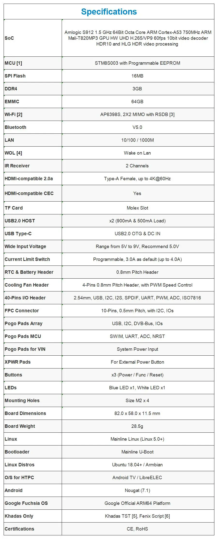 Khadas VIM2 Max V1.4 3 ГБ DDR4 RAM 64 Гб EMMC 5,1 Amlogic S912 64Bit AP6398S Wi-Fi BLE 5,0 Android TV Box Mini PC