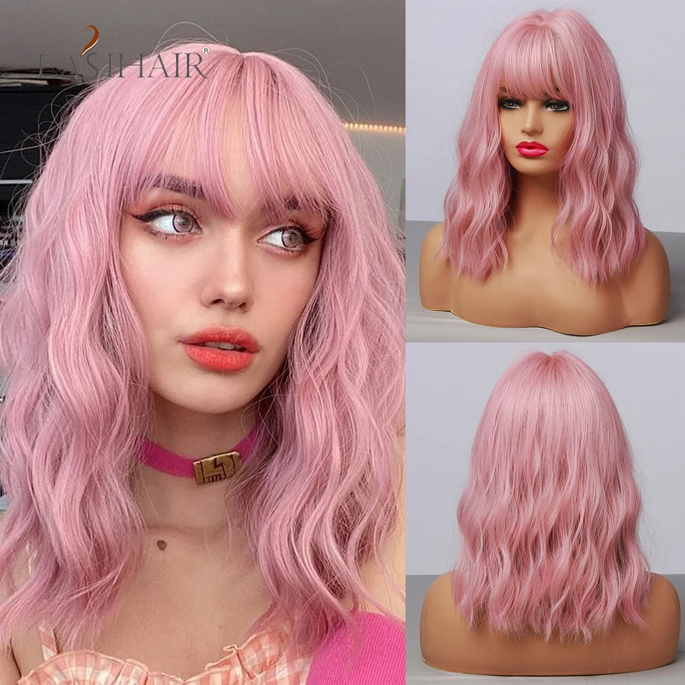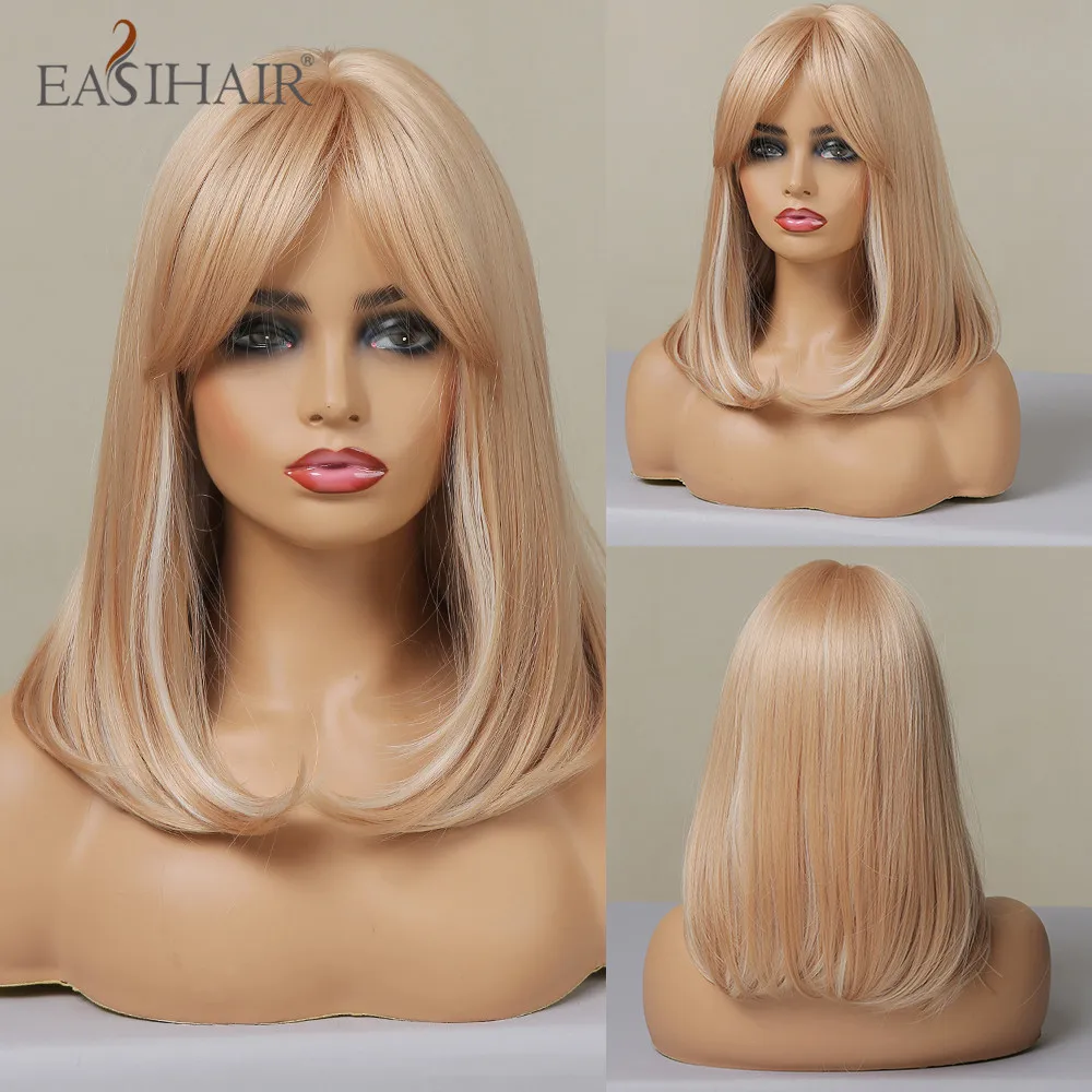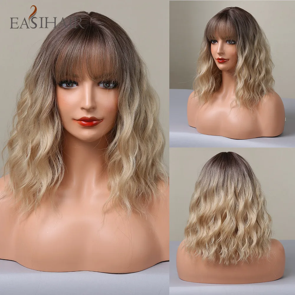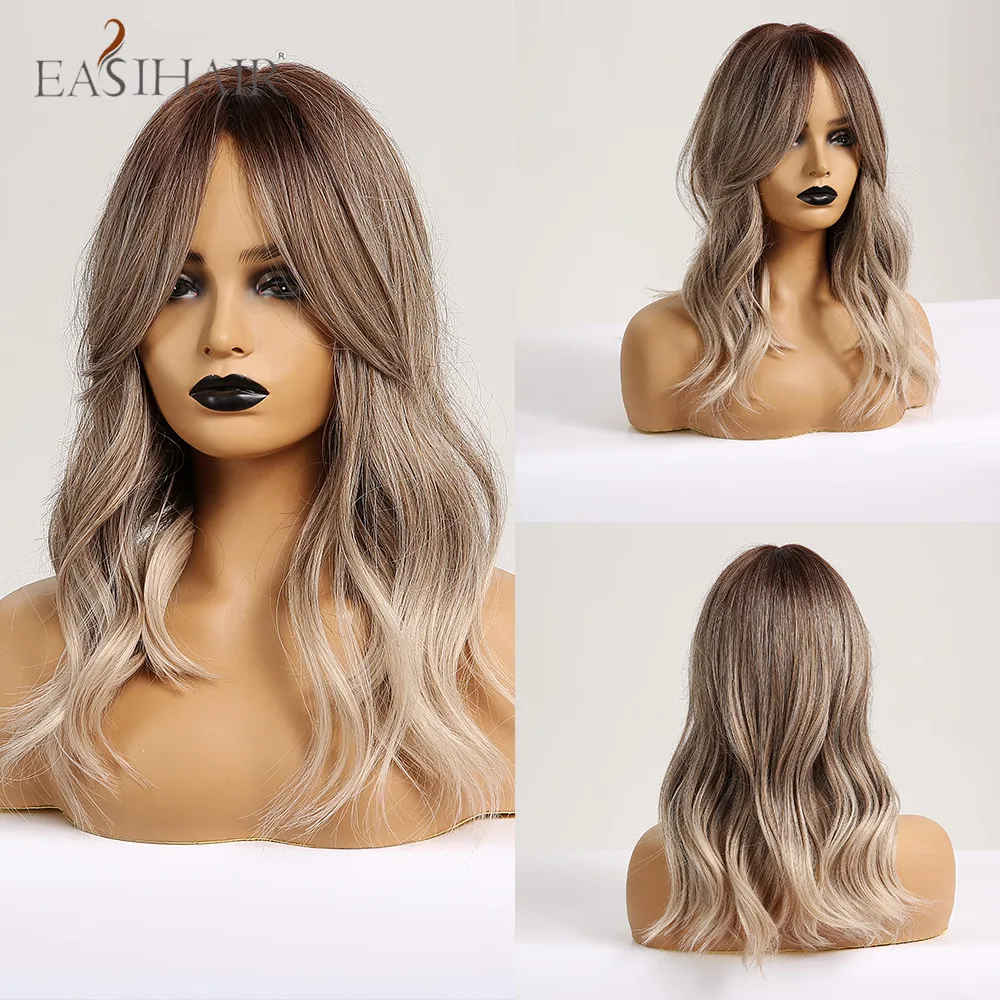 EASIHAIR синтетические волнистые парики с челкой коричневый пепельный блонд средние волнистые волосы парики для женщин повседневный Косплей термостойкий женский парик