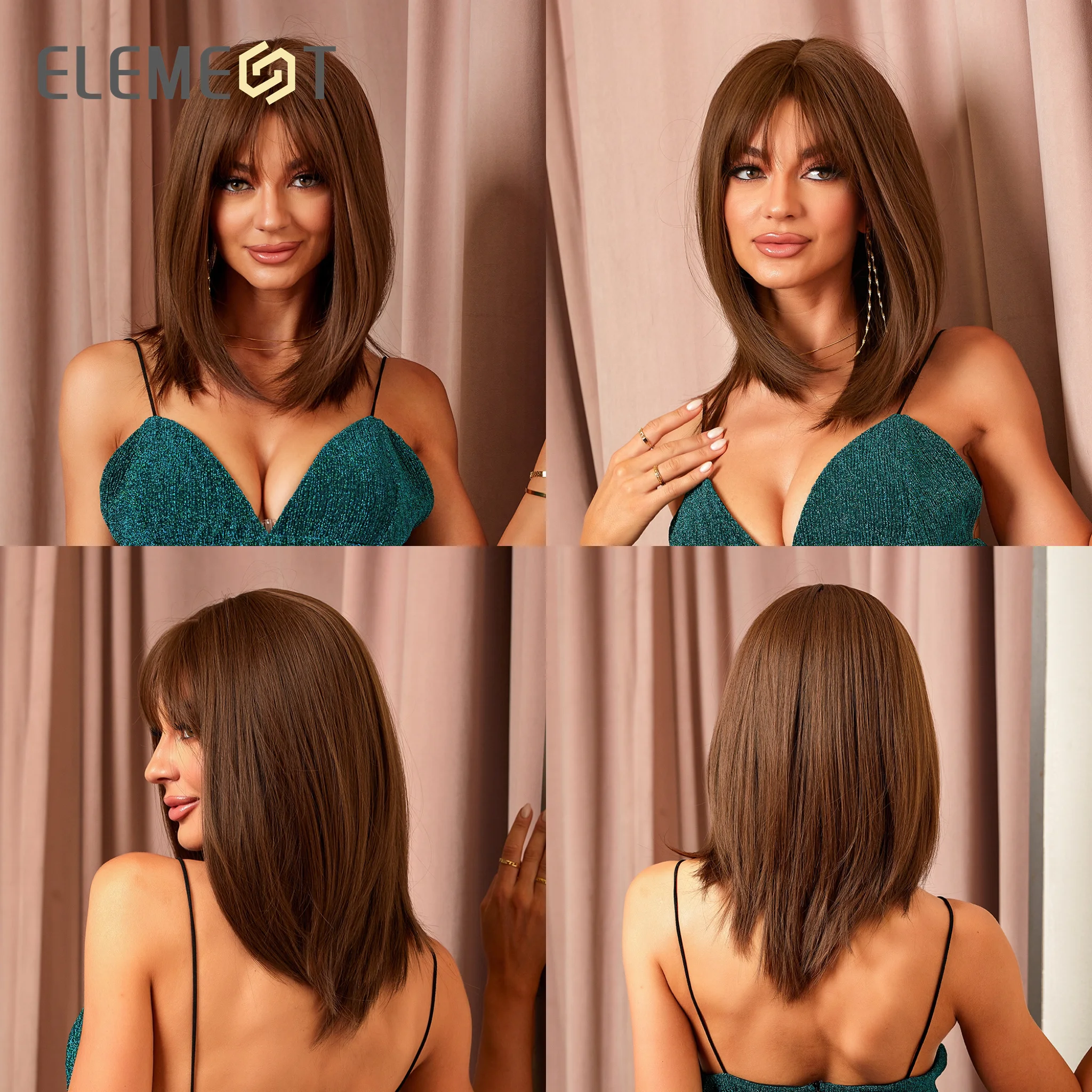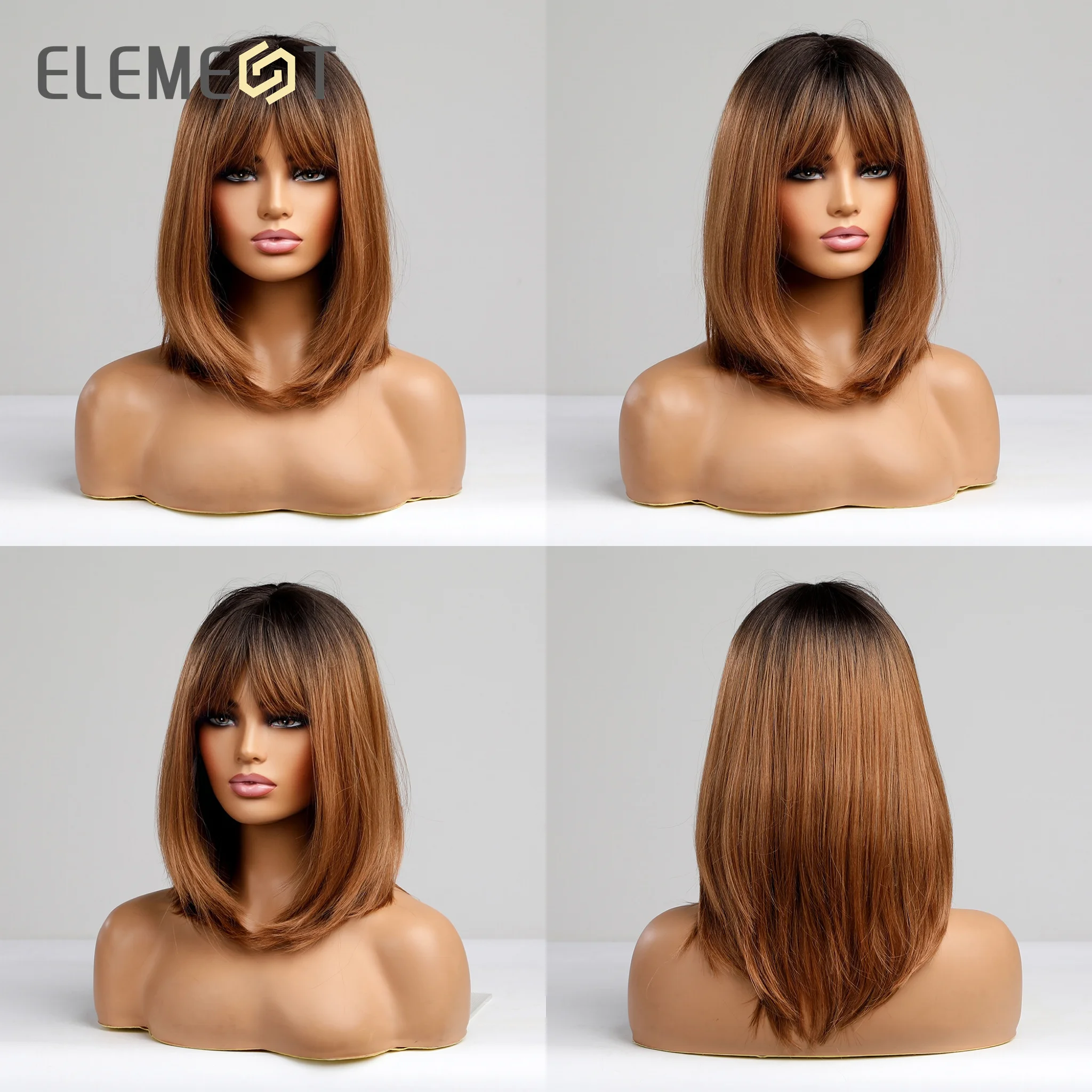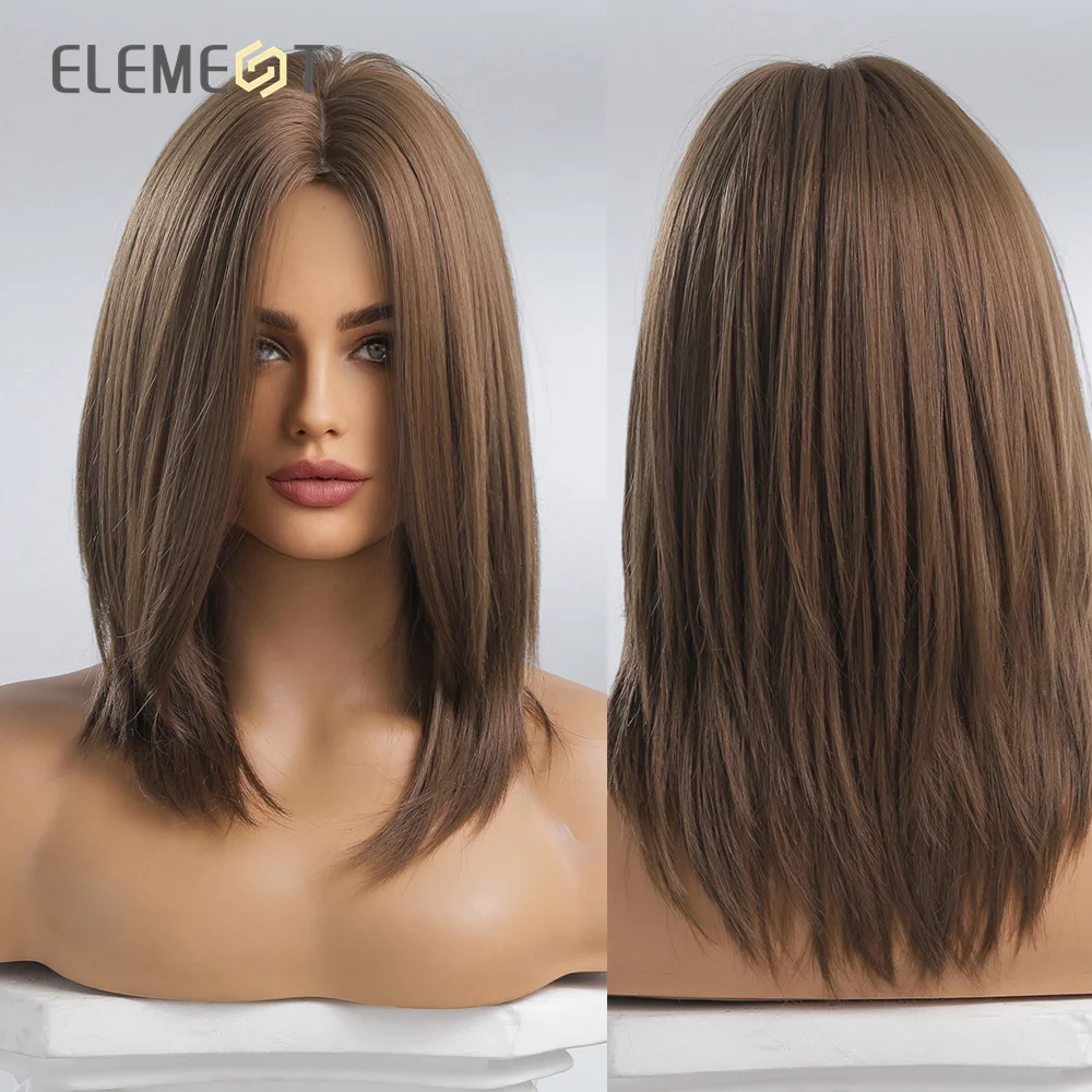 Парик из синтетического материала, Средний прямой парик из черного и коричневого цвета с челкой для женщин, жаростойкие Повседневные Вечерние волосы на голову