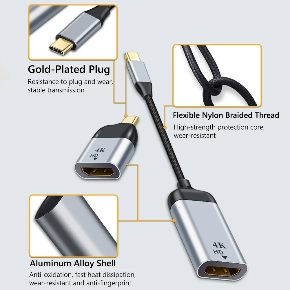 Адаптер USB Type C к HDMI-совместимый 4K 60Hz HD проекция папа к женскому видео кабель конвертер для ПК компьютера