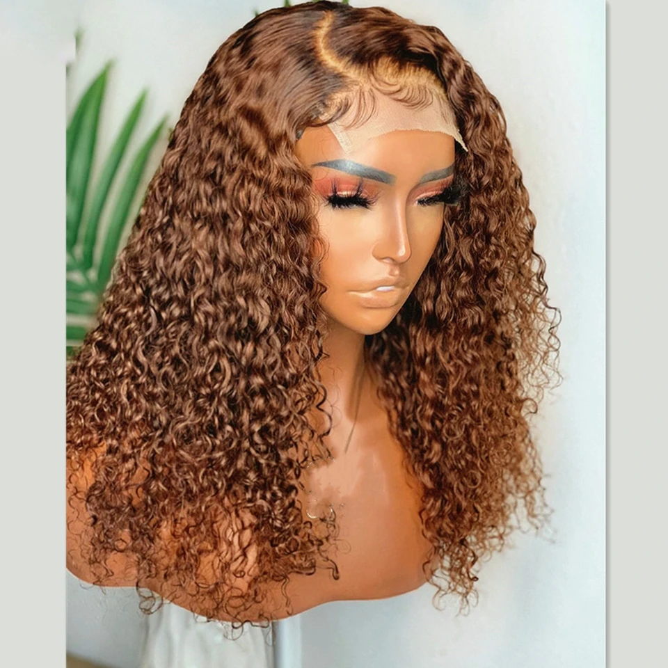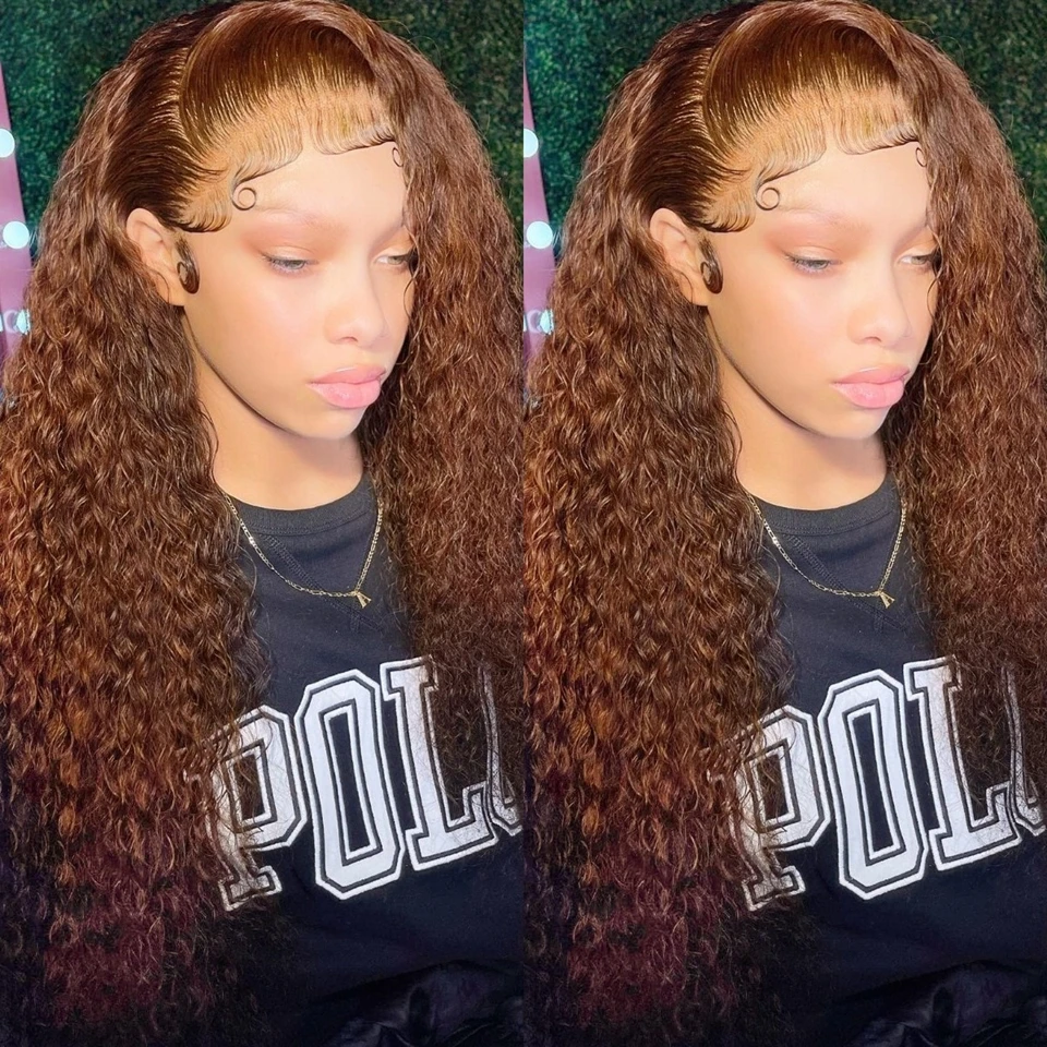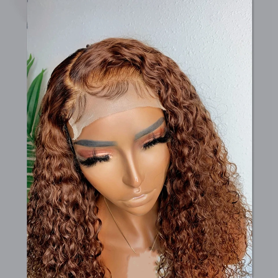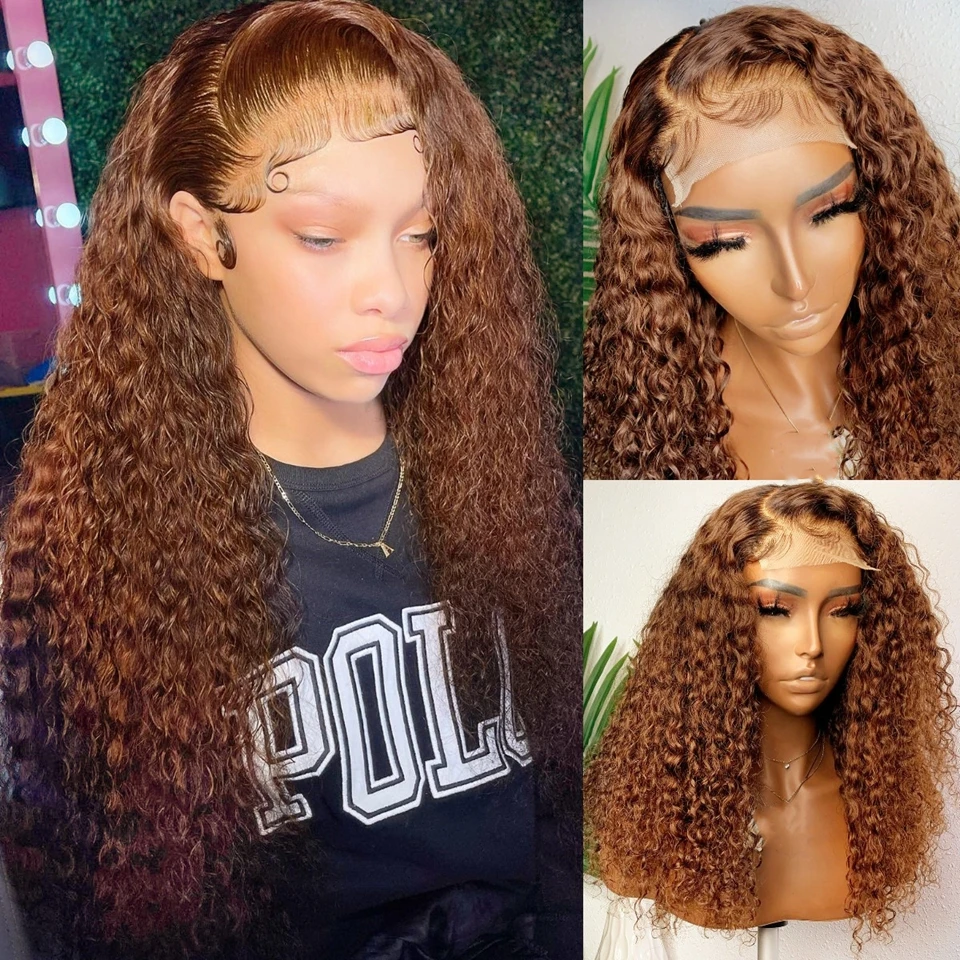 #4 Chocolate Brown Lace Front Wig 13X4 Deep Wave Frontal Wig Brazilian Colored Lace Front Human Hair Wigs Curly Pre Plucked Hair