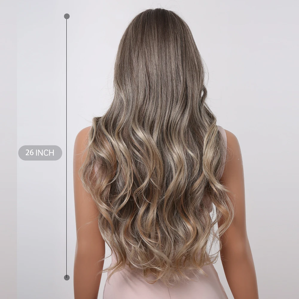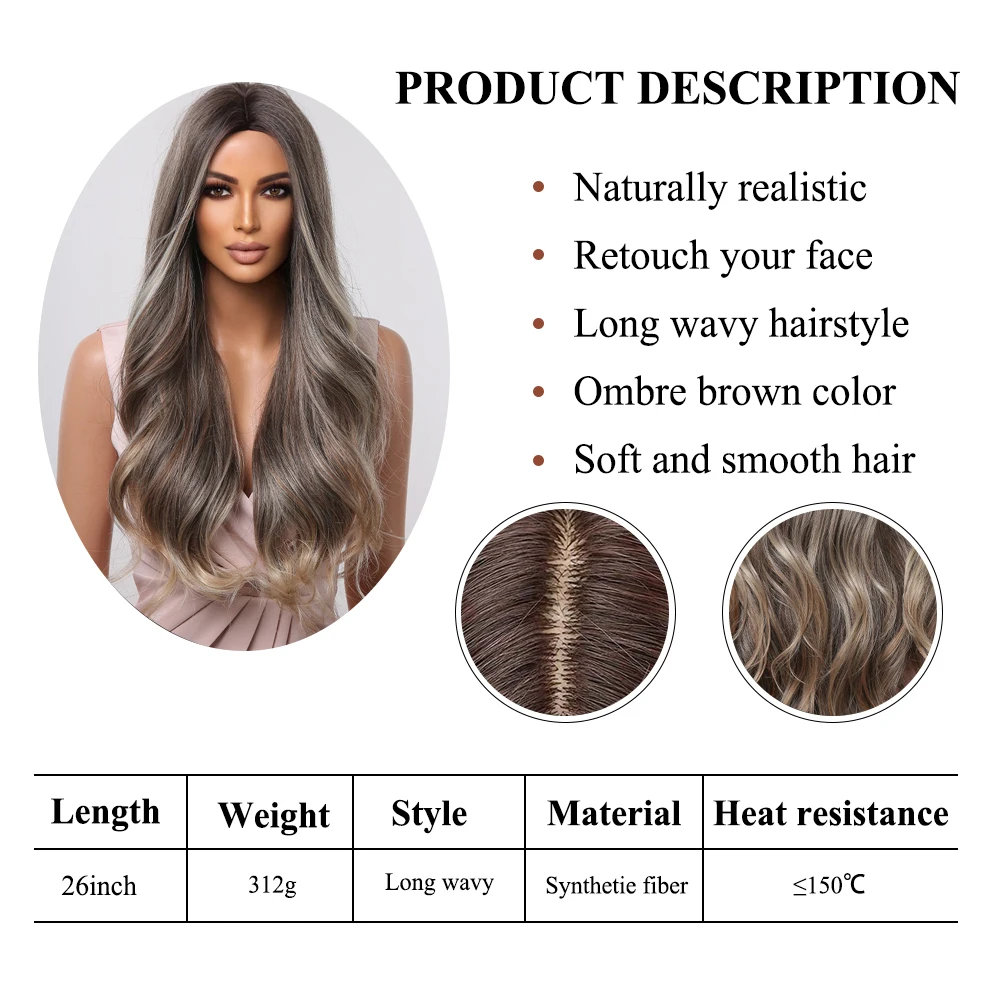 EASIHAIR Ombre коричневый серый пепельный Синтетические длинные волнистые парики средняя часть смешанный блонд парик для черных женщин ежедневно Косплей жаростойкие