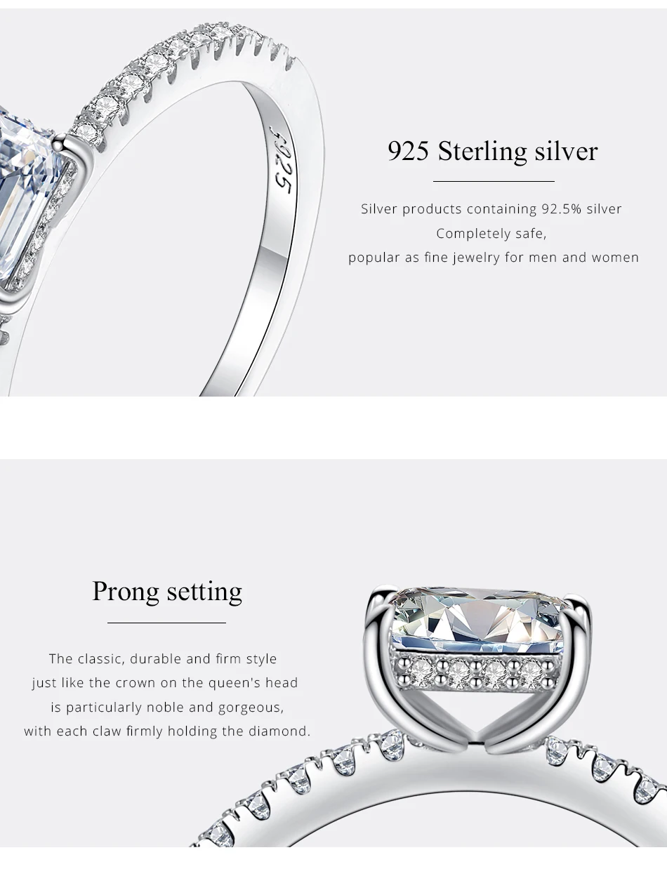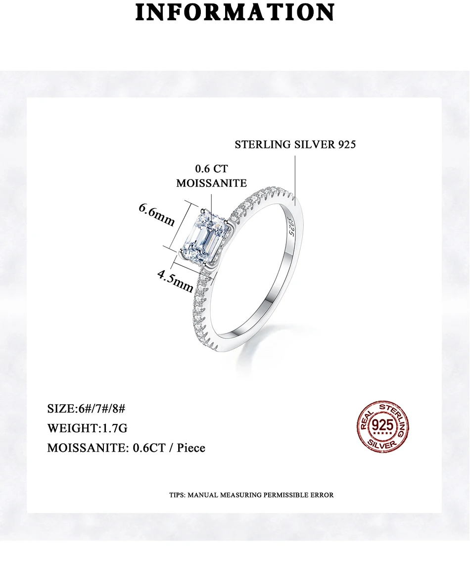 100% кольца с муассанитом 0.6CT изумрудная Огранка алмазов, обручальные кольца для женщин и девочек обещание покрытые фианитами с алмазным блеском, роскошный подарок ювелирные изделия из стерлингового серебра