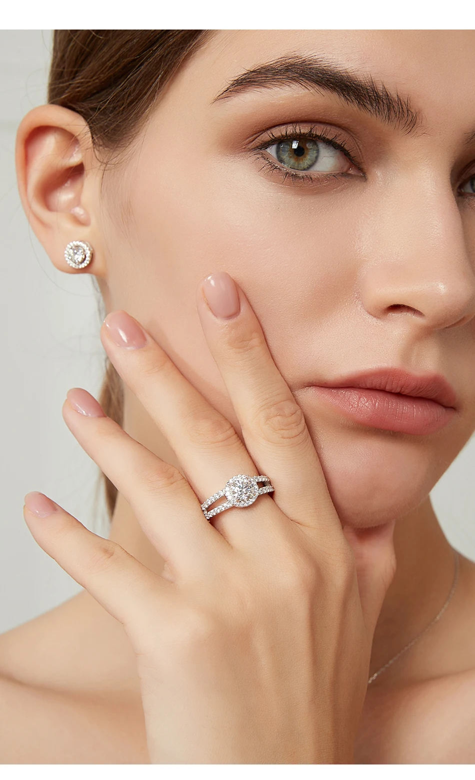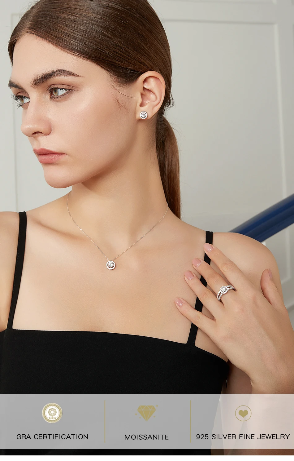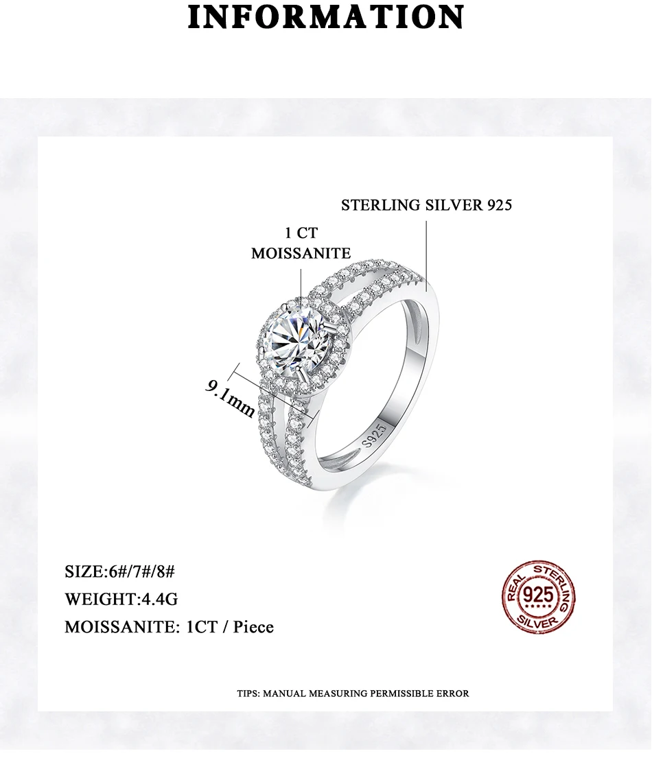 Диск круглое кольцо Moissanite сертифицированное 925 пробы Серебряное обручальное свадебное циркониевое проложить Установка лабораторные алмазные кольца