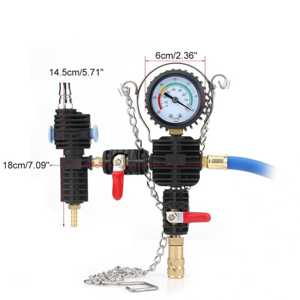 1. Набор для вакуумного пополнения охлаждающей жидкости радиатора использует магазин воздуха для эвакуации и тестов на утечку системы охлаждения автомобиля. Заправка охлаждающей жидкости в течение нескольких минут