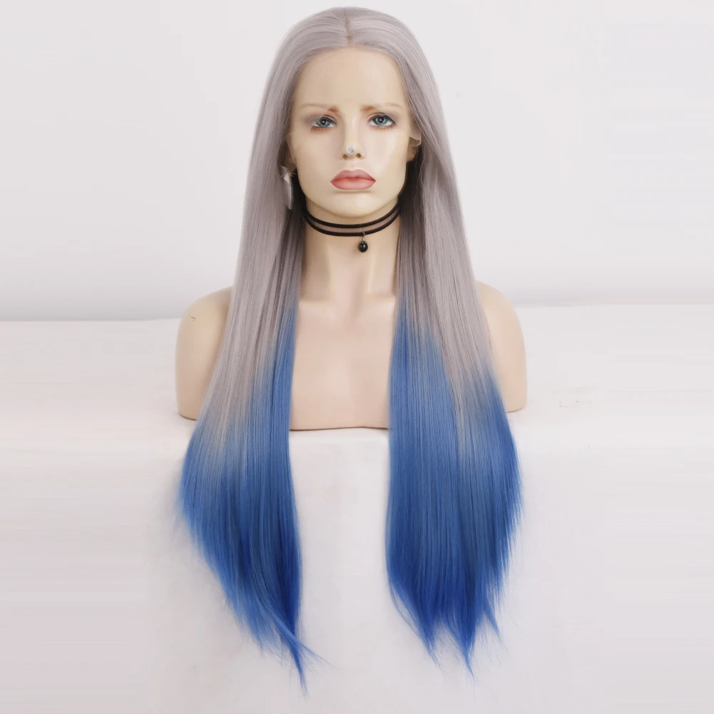 Цвет: синий Омбре кружевной передний парик